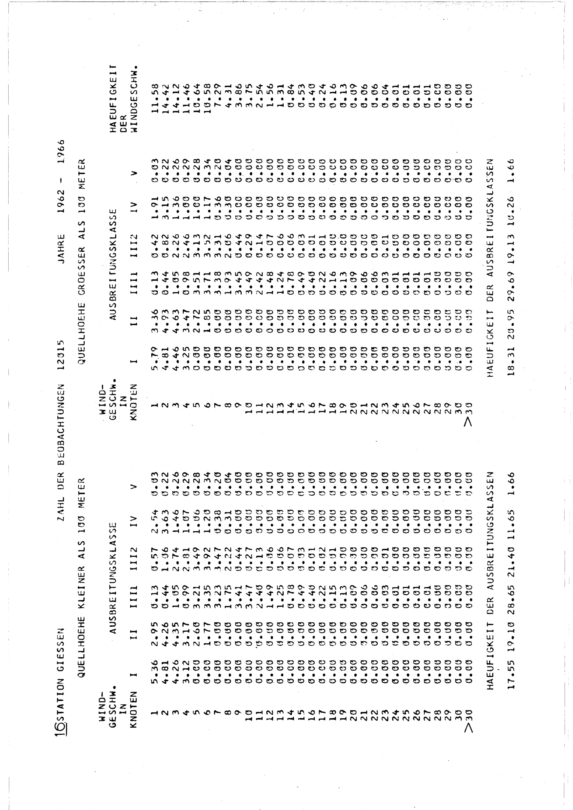 I. Die Häufigkeitsverteilungen von Ausbreitungsklasse und Windgeschwindigkeit für...