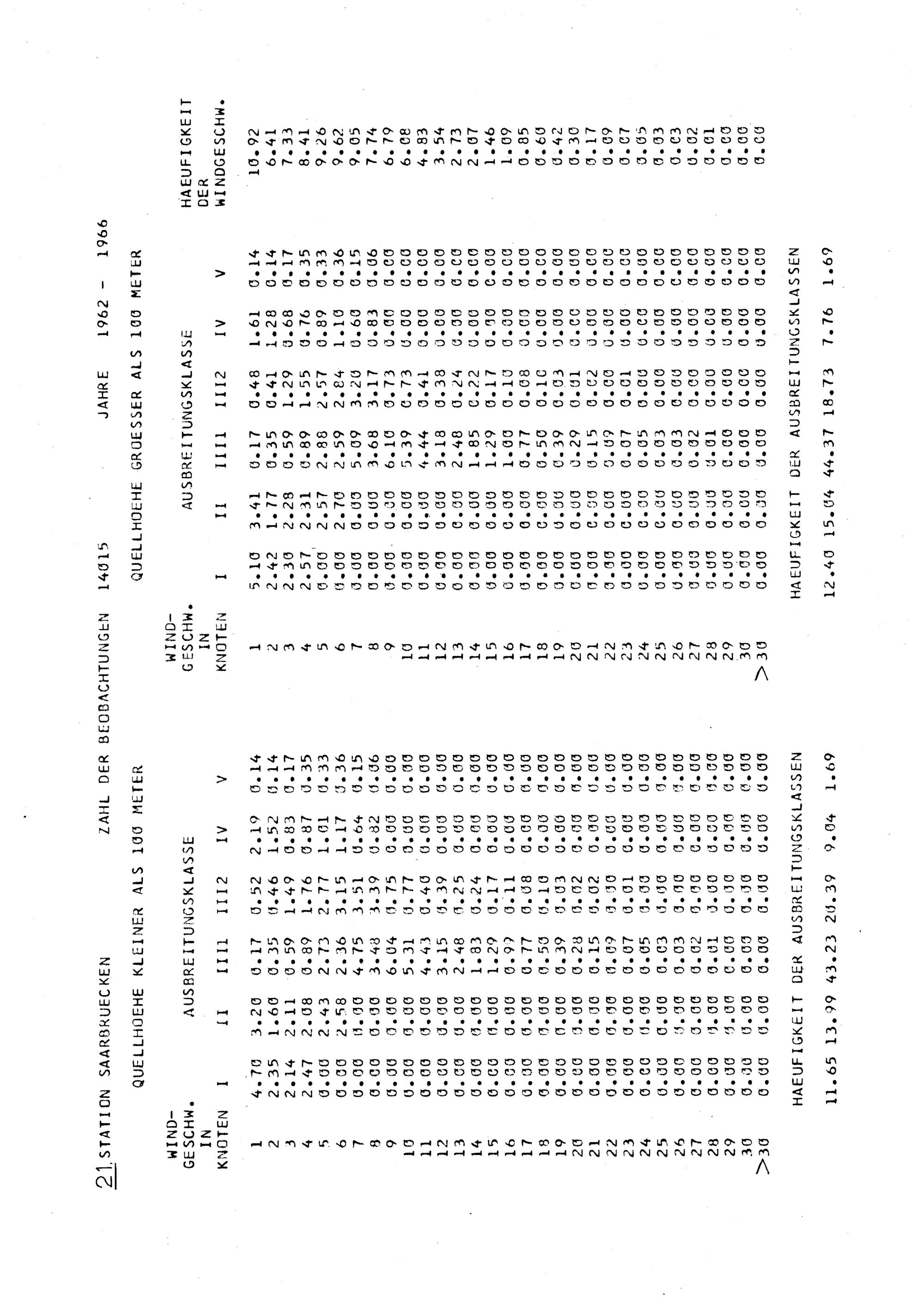 I. Die Häufigkeitsverteilungen von Ausbreitungsklasse und Windgeschwindigkeit für...