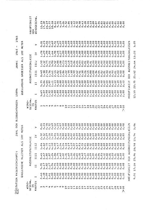 I. Die Häufigkeitsverteilungen von Ausbreitungsklasse und Windgeschwindigkeit für 30 Stationen in der BRD