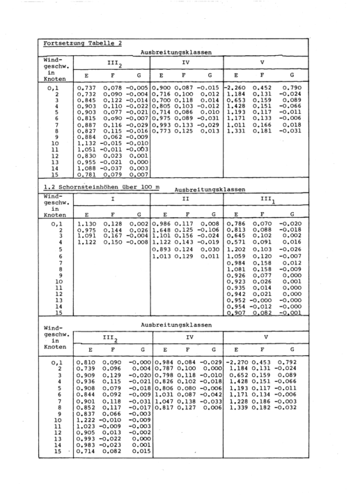 I. Die Häufigkeitsverteilungen von Ausbreitungsklasse und Windgeschwindigkeit für 30 Stationen in der BRD