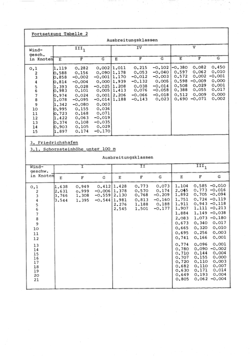 I. Die Häufigkeitsverteilungen von Ausbreitungsklasse und Windgeschwindigkeit für 30 Stationen in der BRD