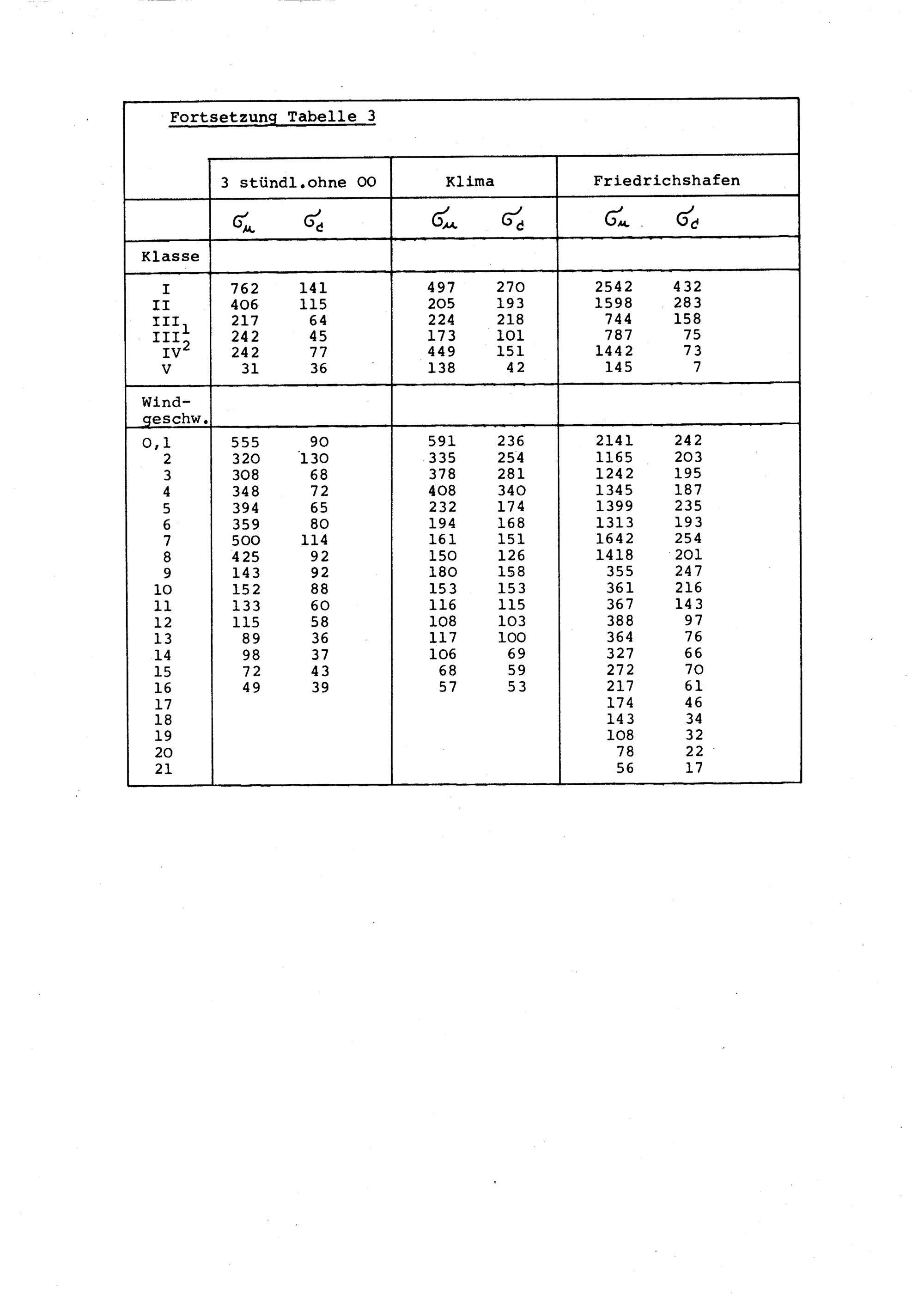 I. Die Häufigkeitsverteilungen von Ausbreitungsklasse und Windgeschwindigkeit für 30 Stationen in der BRD