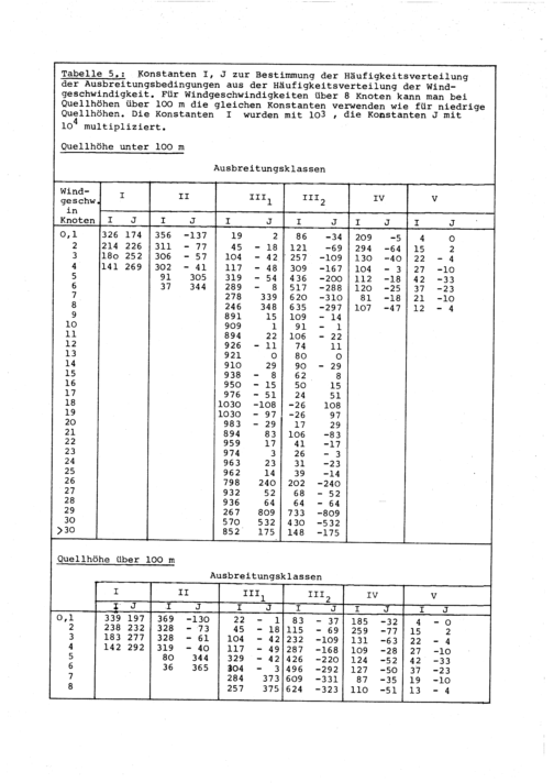 I. Die Häufigkeitsverteilungen von Ausbreitungsklasse und Windgeschwindigkeit für 30 Stationen in der BRD