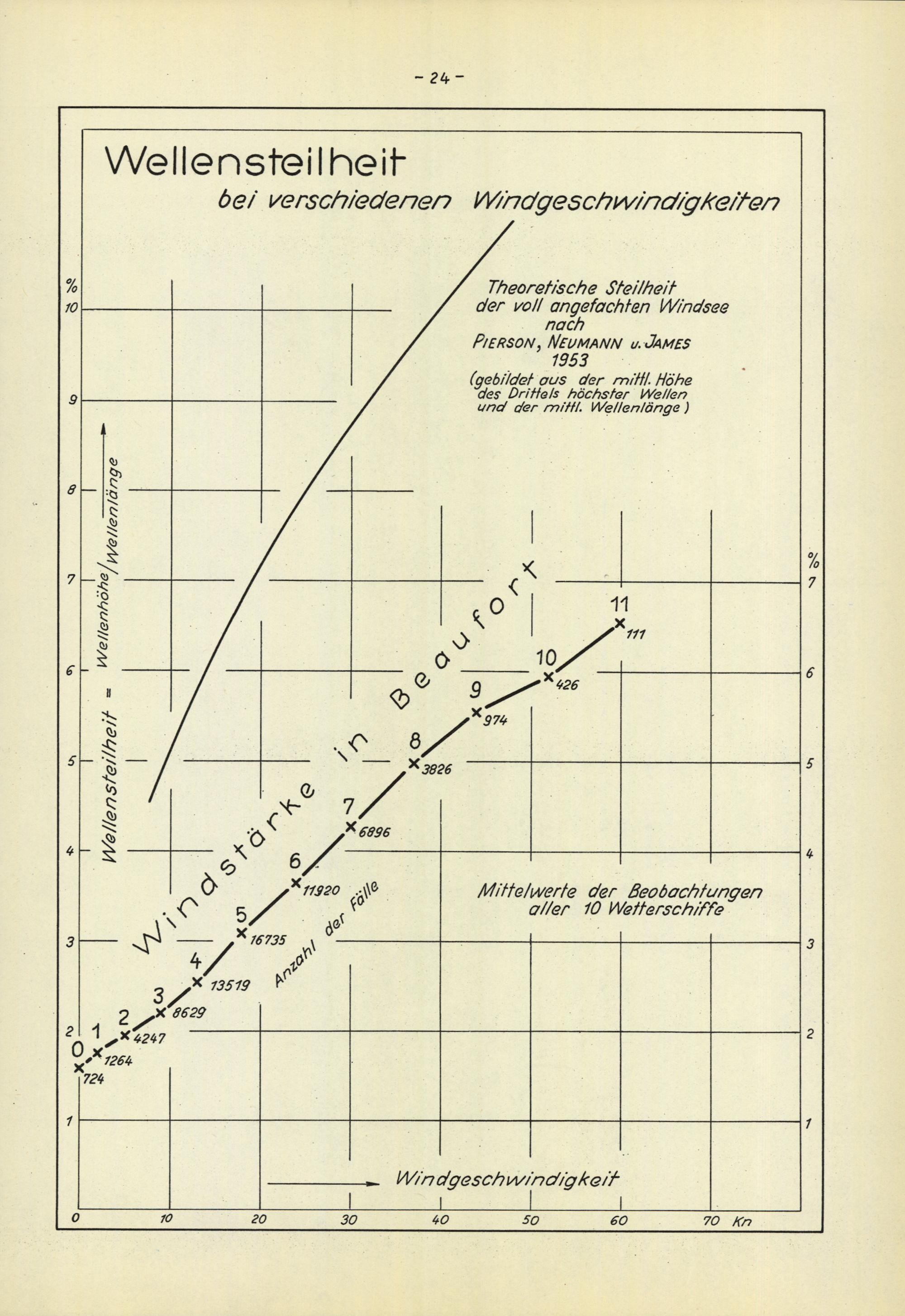 Die Größe der Meereswellen in Abhängigkeit von der Windstärke : (auf Grund der Wellenbeobachtungen der nordatlantischen Wetterschiffe) / bearb. von: H. U. Roll