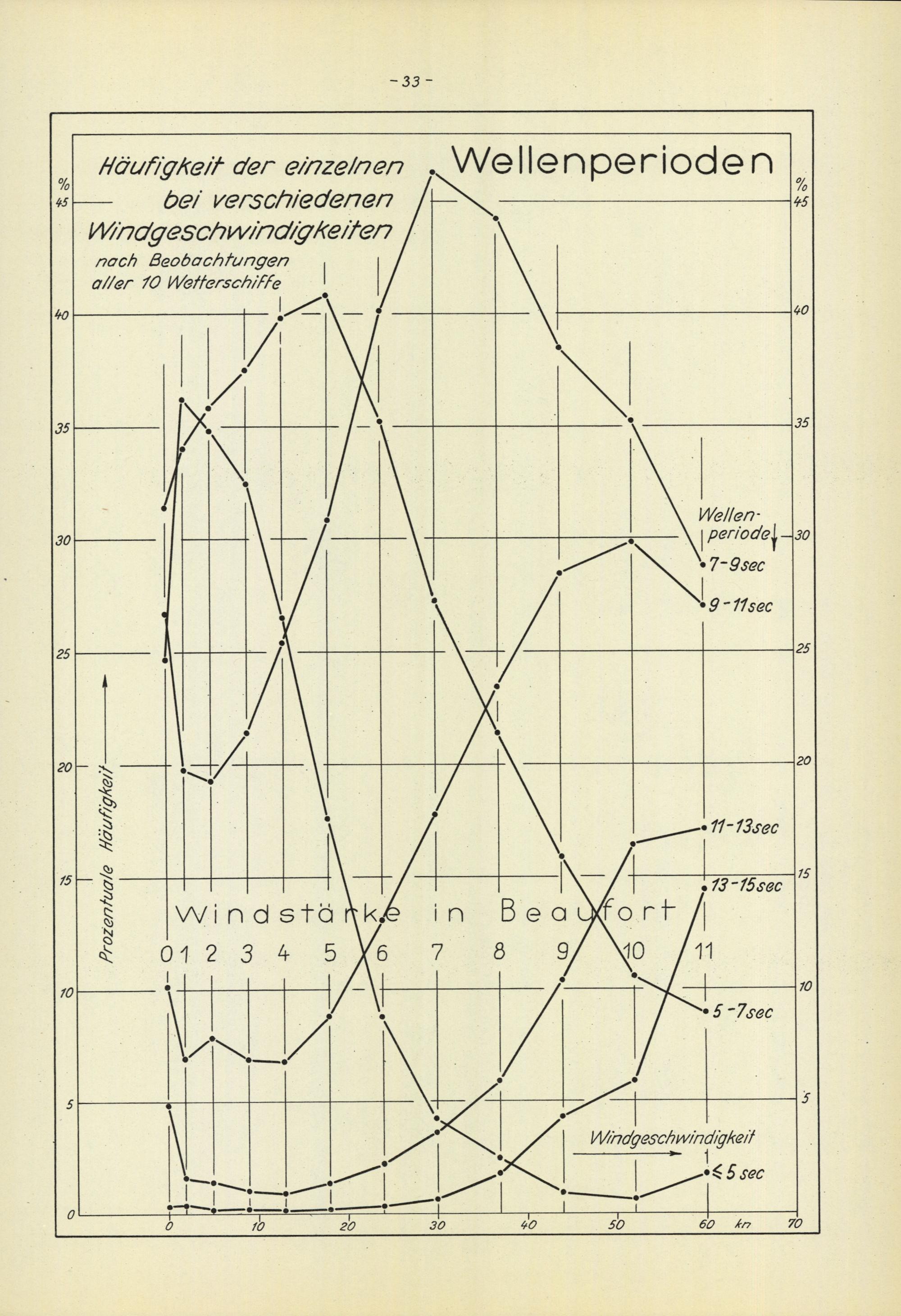 Die Größe der Meereswellen in Abhängigkeit von der Windstärke : (auf Grund der Wellenbeobachtungen der nordatlantischen Wetterschiffe) / bearb. von: H. U. Roll