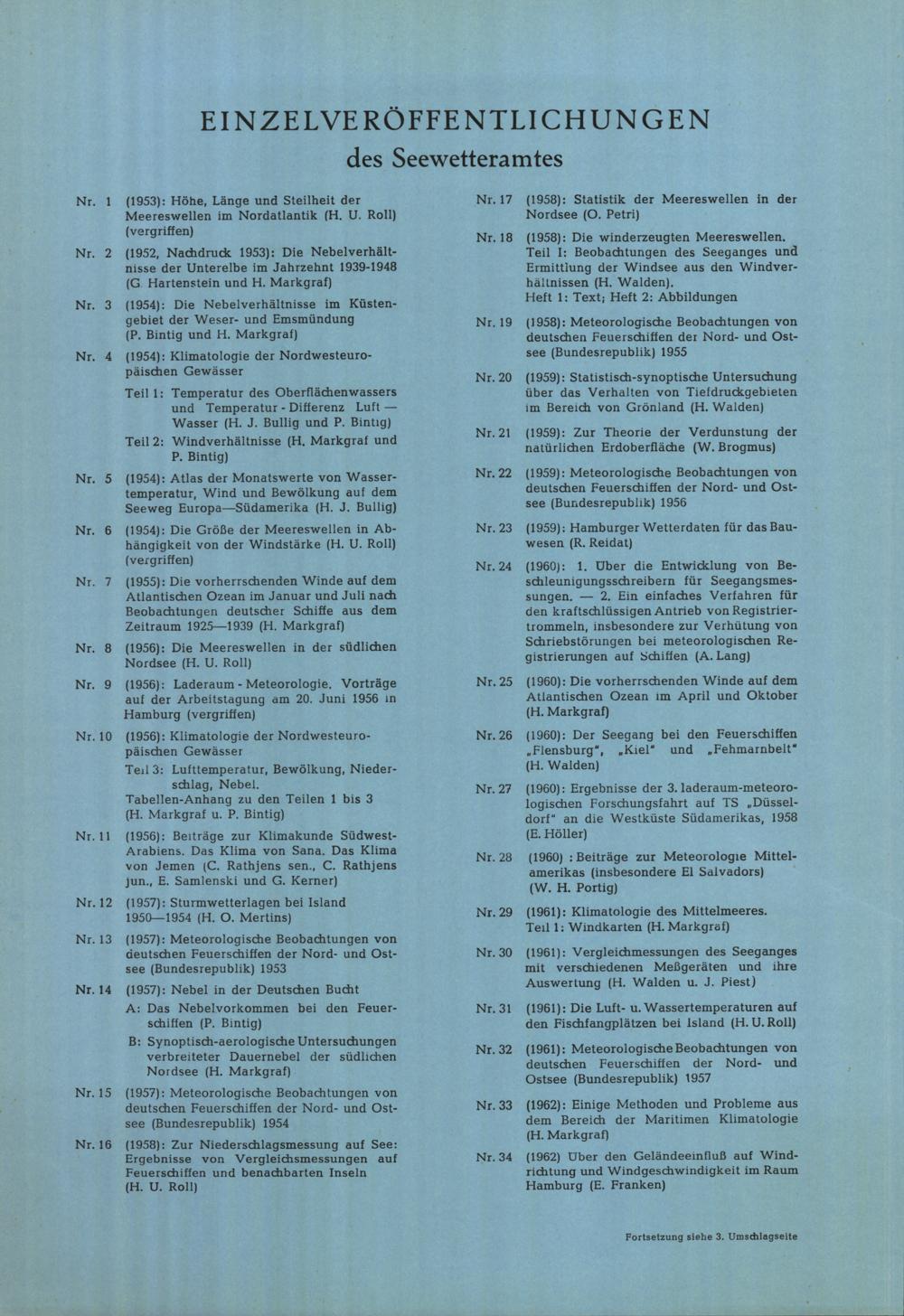 Der Seegang in ausgewählten Gebieten des tropischen und subtropischen Atlantischen Ozeans : Schiffsrouten Westeuropa - Rio de la Plata und Westeuropa - Golf von Guinea / bearb. von Hans Walden