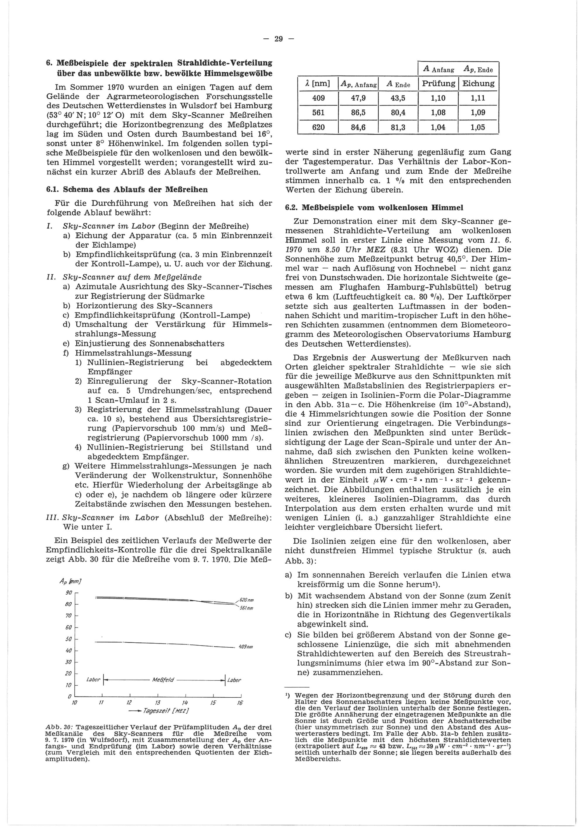 6. Meßbeispiele der spektralen Strahldichte-Verteilung über das unbewölkte bzw. bewölkte...