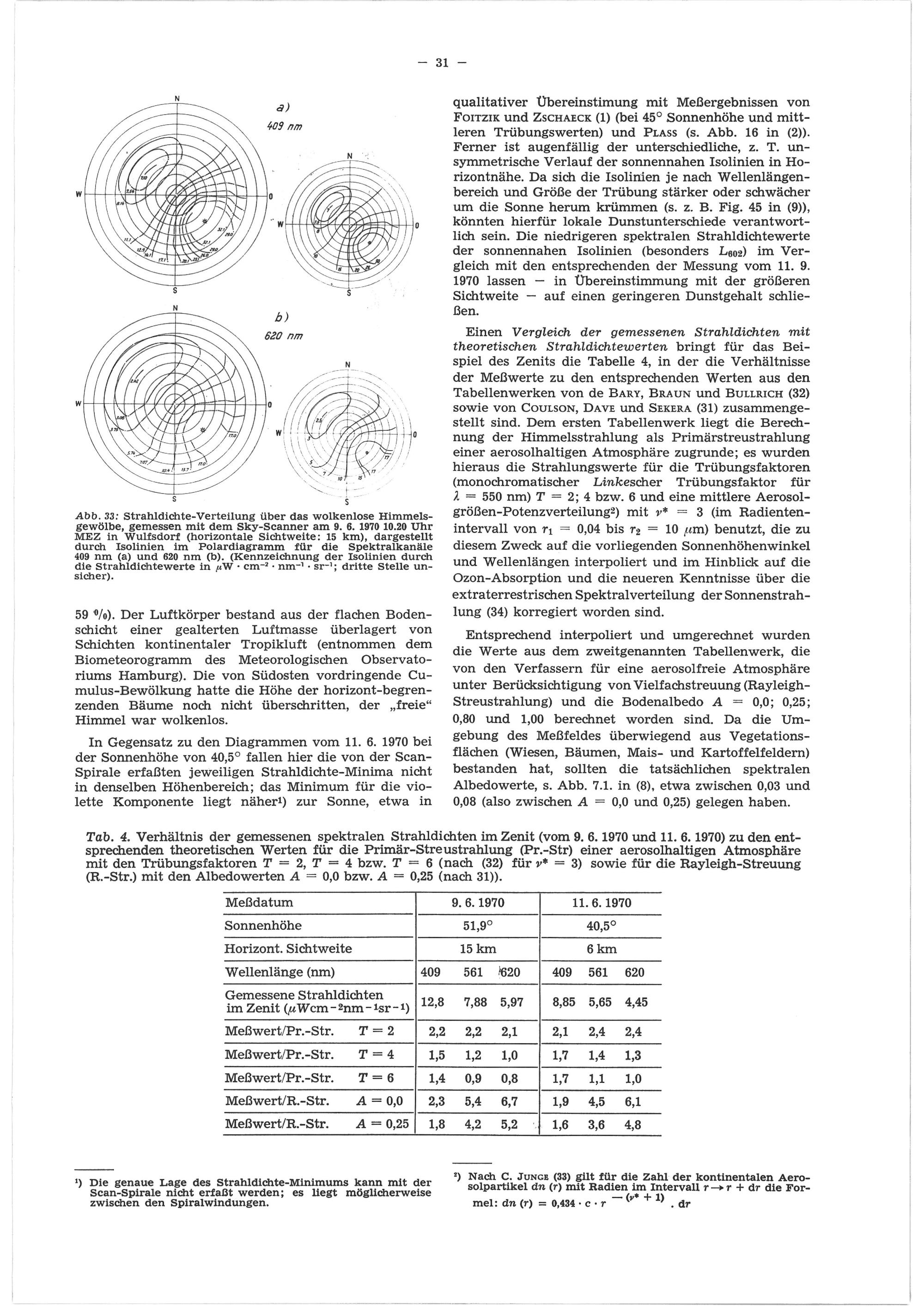 6. Meßbeispiele der spektralen Strahldichte-Verteilung über das unbewölkte bzw. bewölkte...