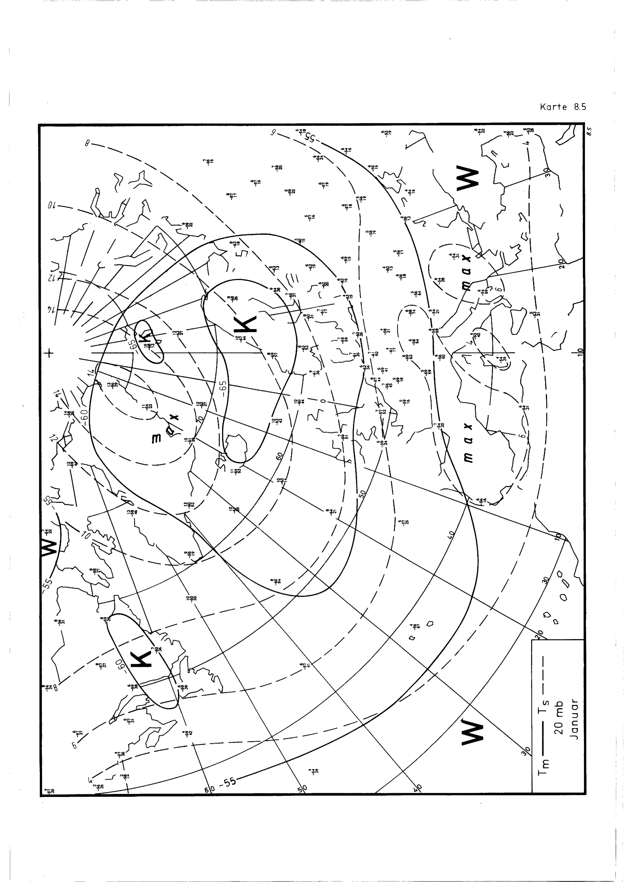 Aeroklimakarten der Druckflächen bis 10-mBar und Vertikalprofile für den Raum Nordatlantik, Europa, Naher Osten : mittlere Windvektoren, Mittel- und Streuungswerte von geopotentieller Höhe und Temperatur / Hans Guss