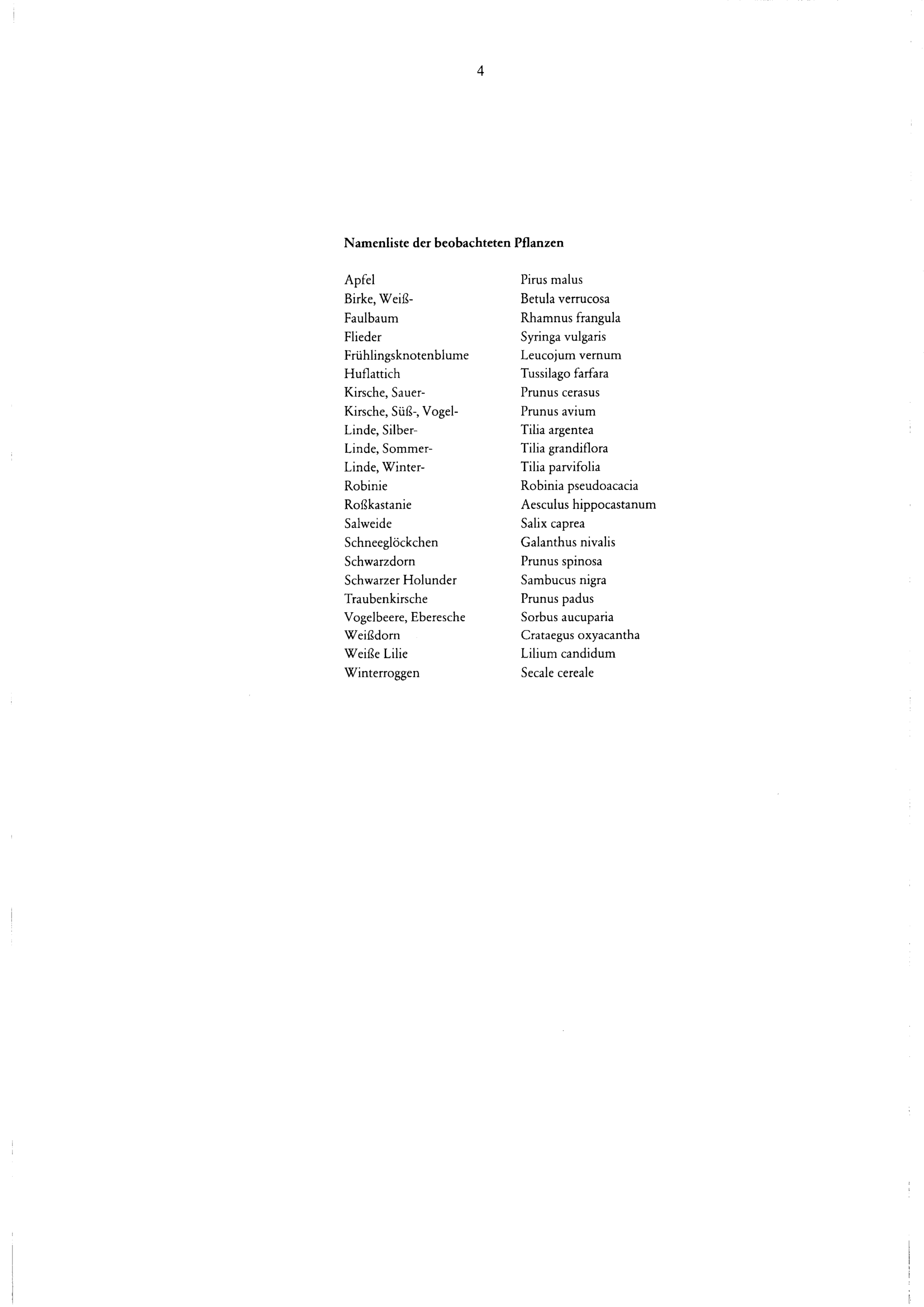 Namenliste der beobachteten Pflanzen