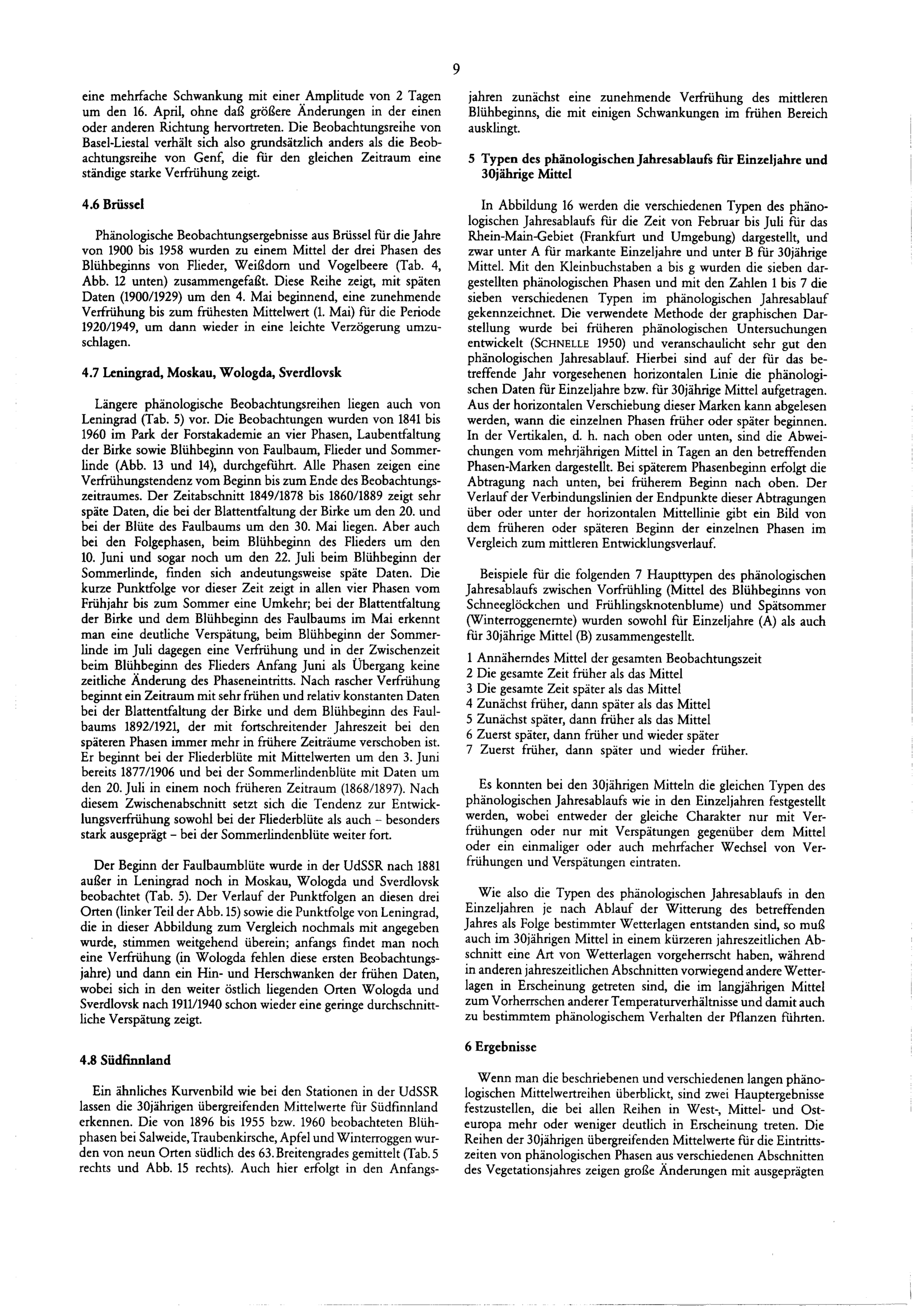 5. Typen des phänologischen Jahresablaufs für Einzeljahre und 30jährige Mittel