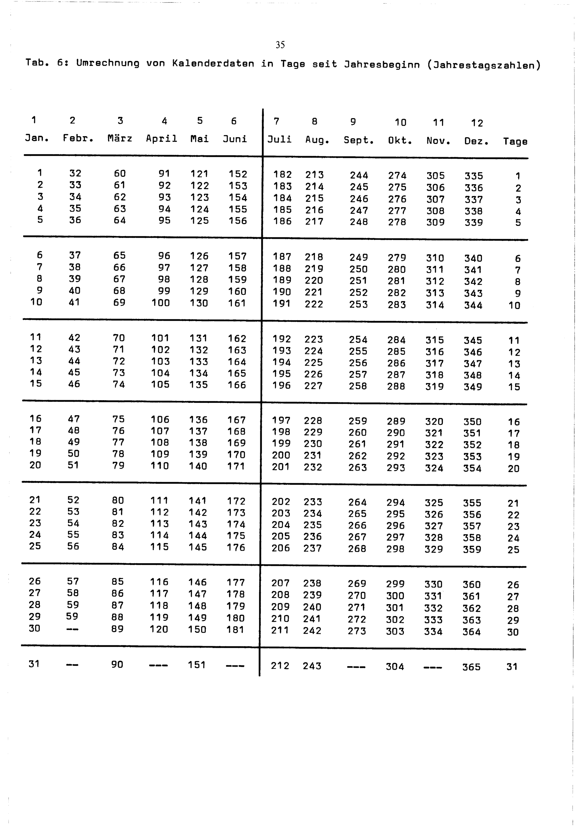 5. Typen des phänologischen Jahresablaufs für Einzeljahre und 30jährige Mittel