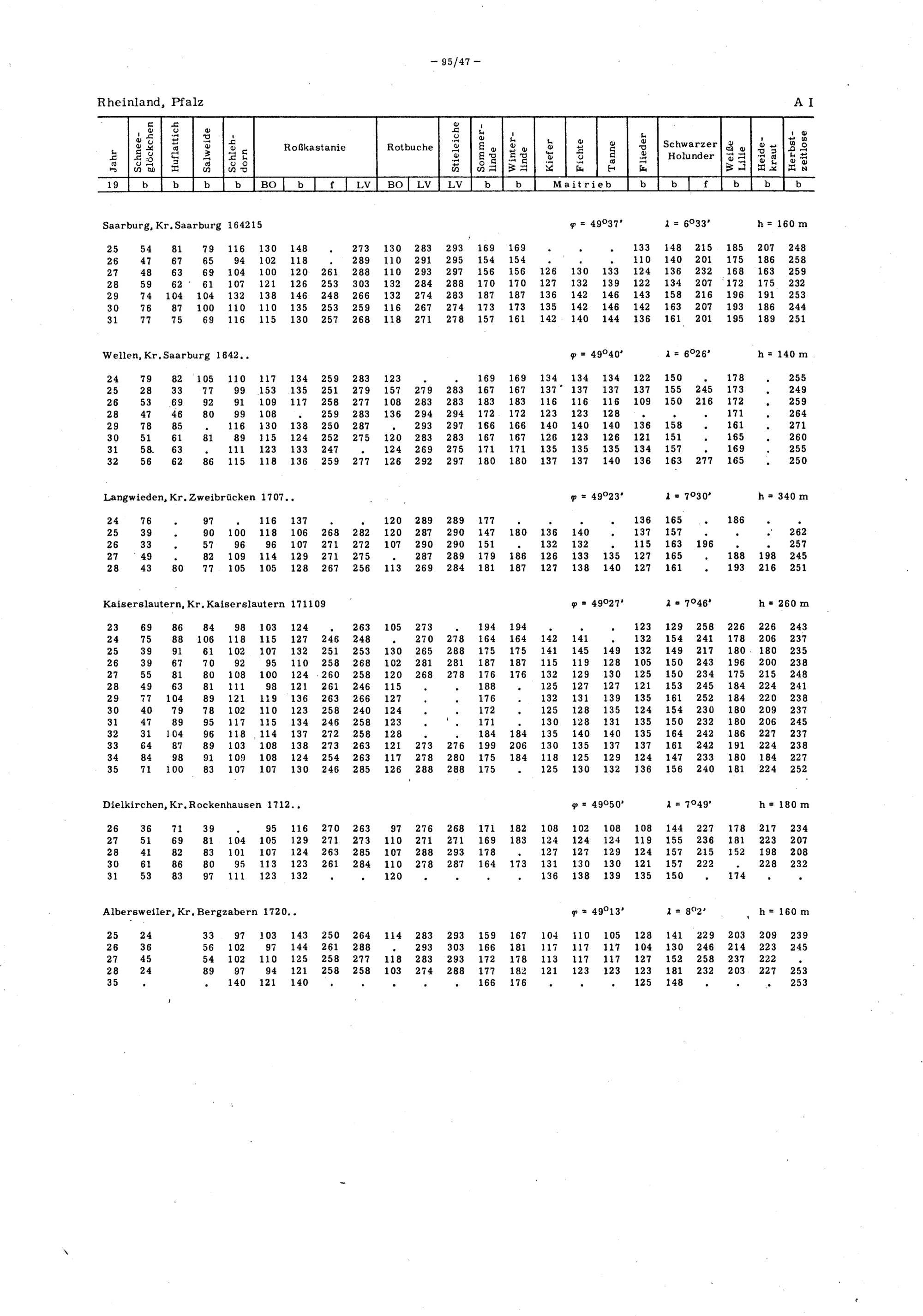 Beiträge zur Phänologie Deutschlands : IV, Tabellen phänologischer Einzelwerte von etwa 500 Stationen der Jahre 1922 bis 1935 / bearb. von Fritz Schnelle ...