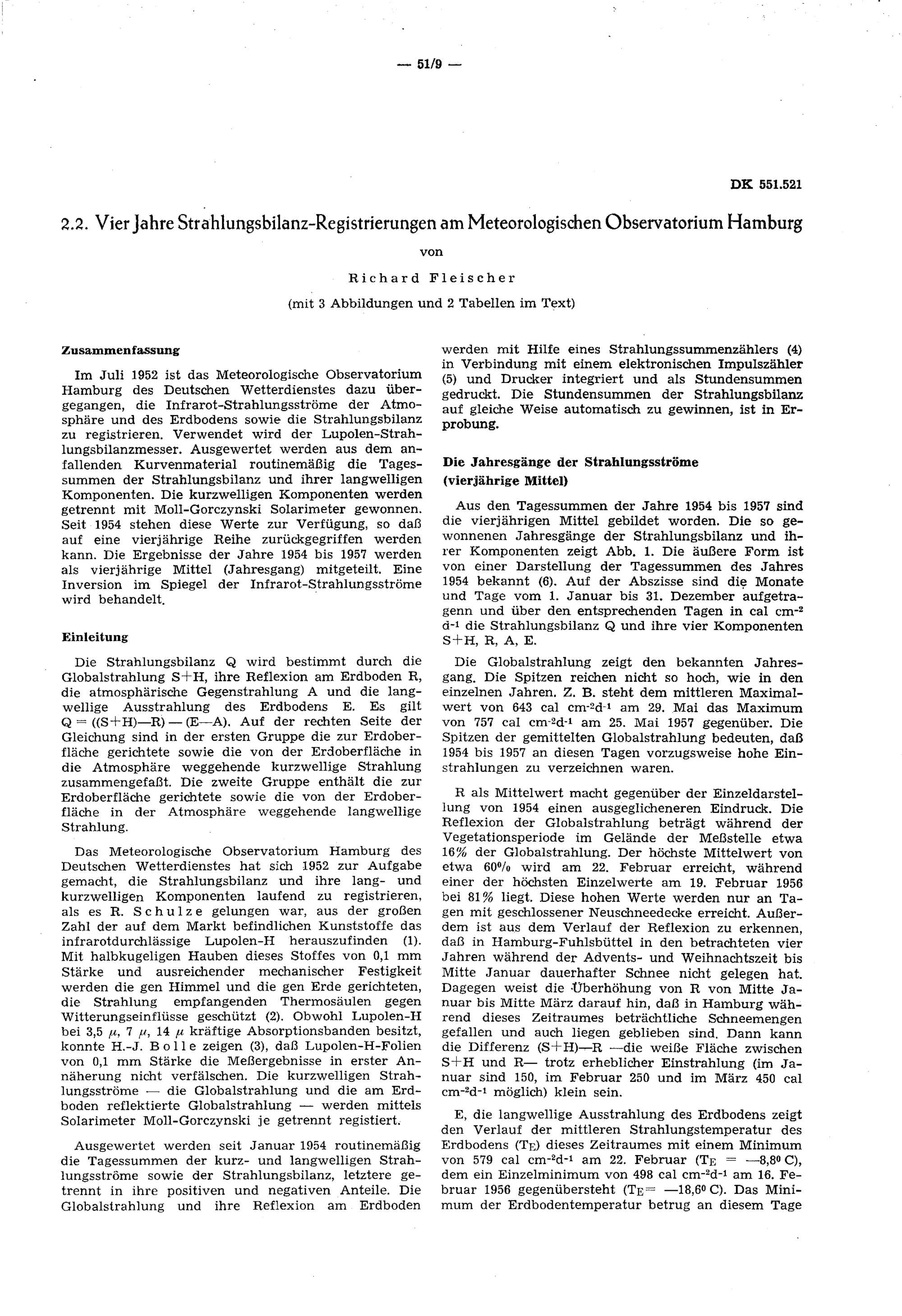 Vorträge zum Themenkreis I: Wärme- und Wasserhaushalt