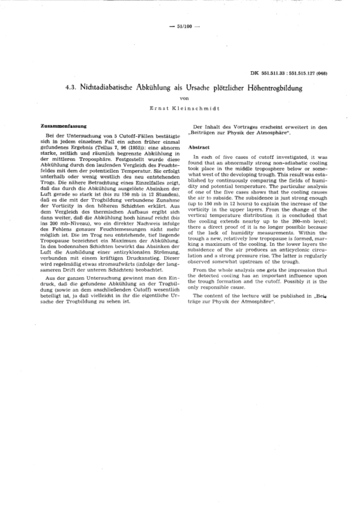 4. Vorträge zum Themenkreis III: Probleme der aerologischen Synoptik