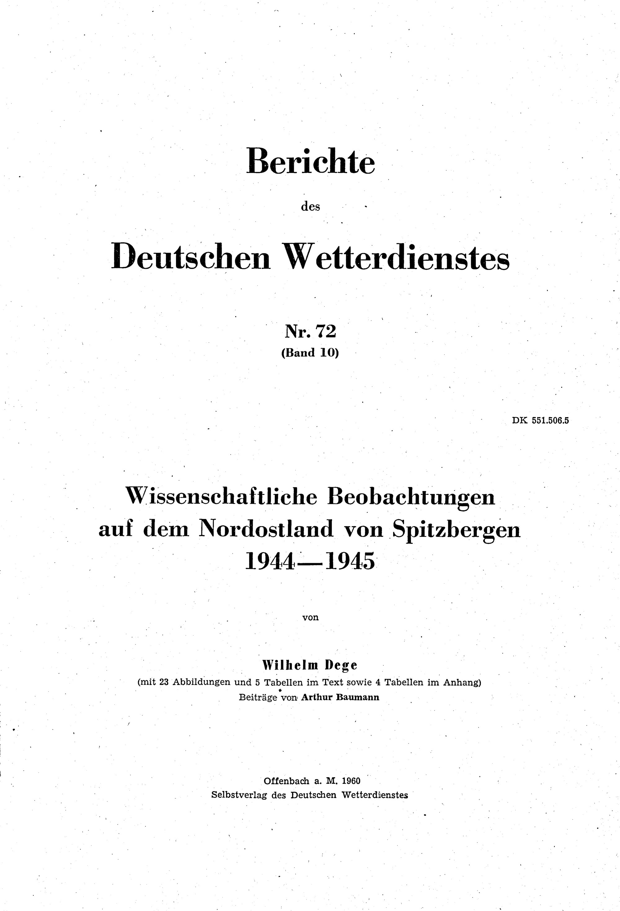 Wissenschaftliche Beobachtungen auf dem Nordostland von Spitzbergen 1944 - 1945 / von Wilhelm Dege