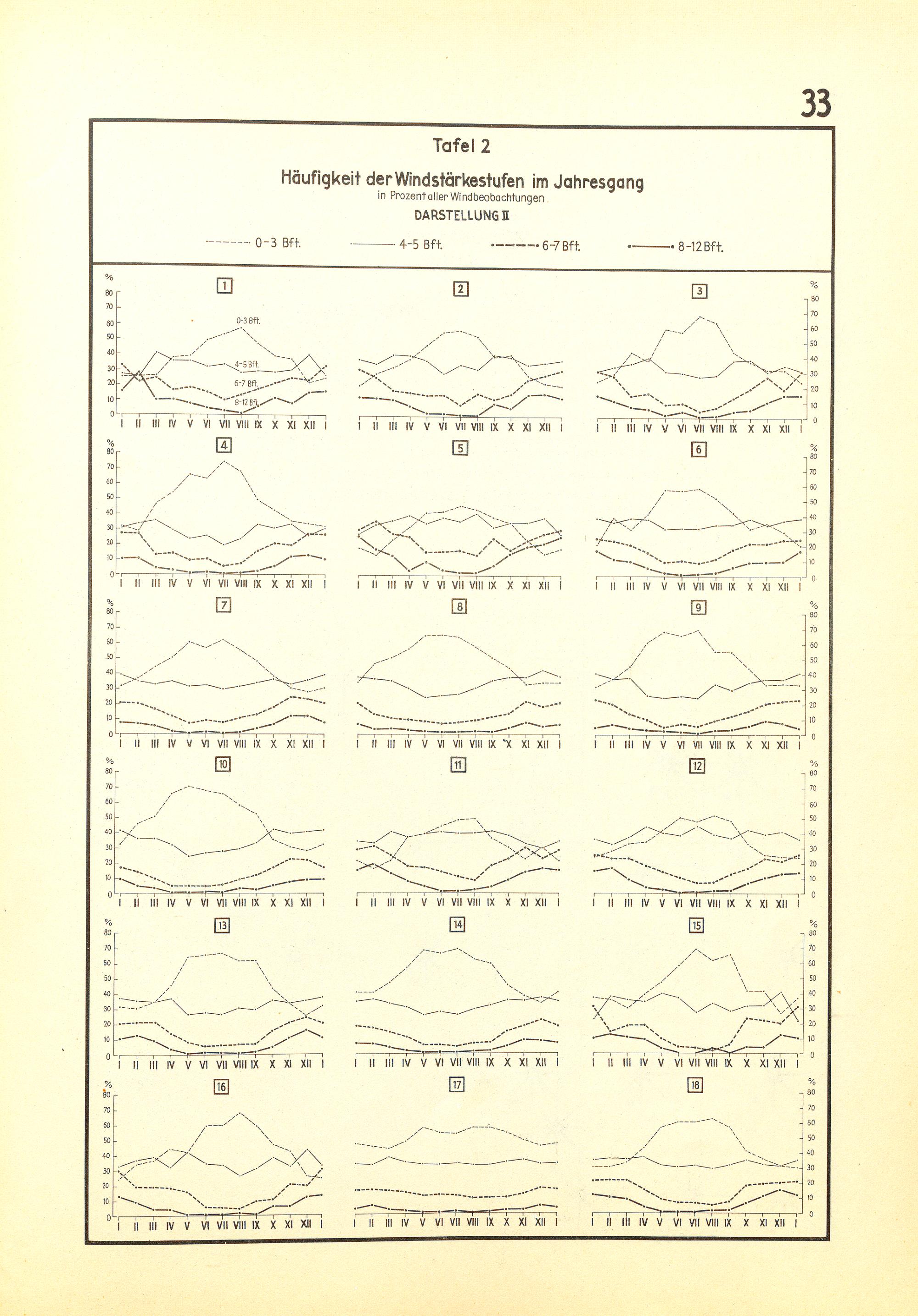 Häufigkeit der Windstärkestufen im Jahresgang