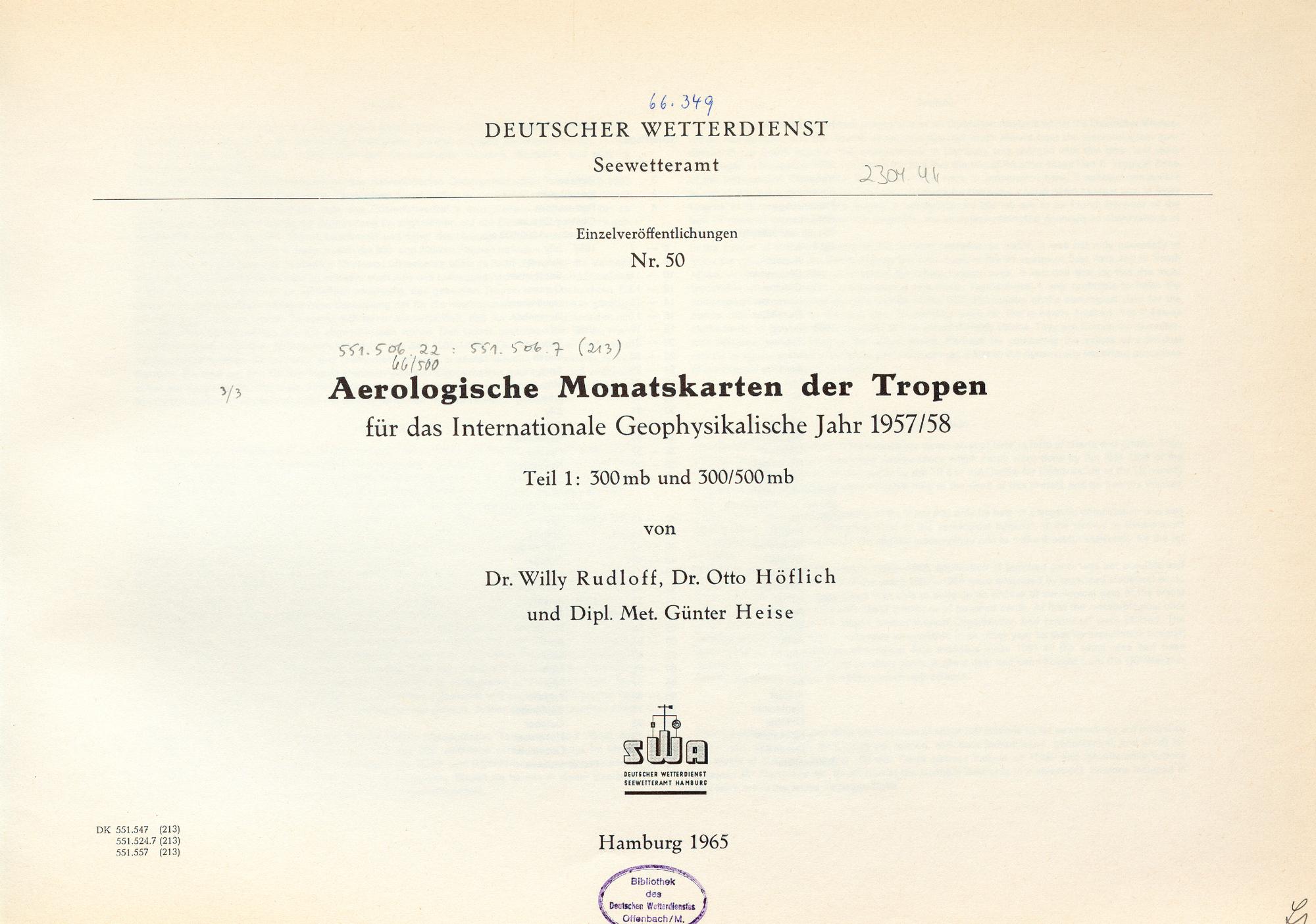1 (1965) 300 mb und 300/500 mb / von Willy Rudloff, Otto Höflich und Günter Heise / von Willy Rudloff, Otto Höflich und Günter Heise