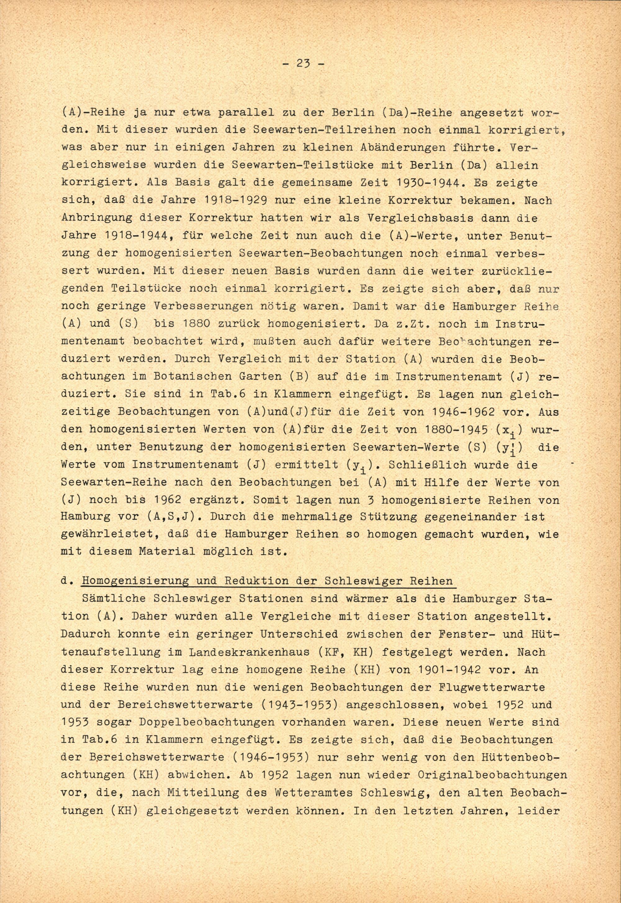 1. Herstellung homogener Reihen der Kältesummen / Hans Müller-Annen
