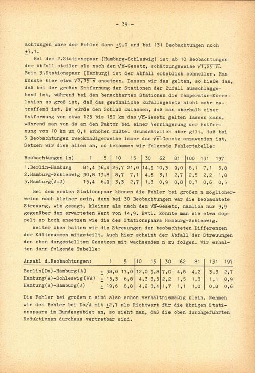 1. Herstellung homogener Reihen der Kältesummen / Hans Müller-Annen