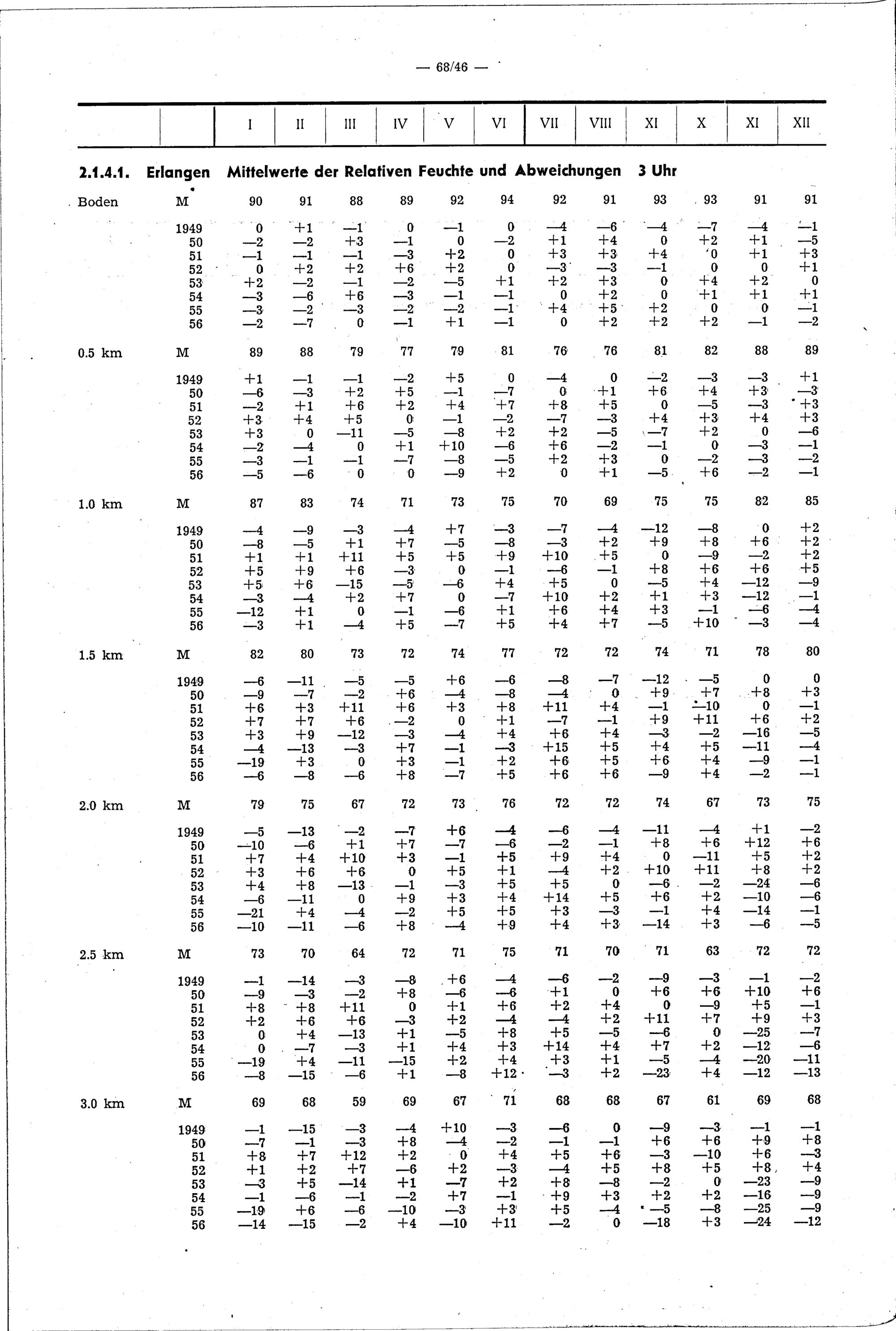 Teil VI: Mittelwerte der Relativen Feuchte über Berlin, Erlangen, München, Zeitraum 1949 bis 1953; Abweichungen in den Einzelmonaten 1949 bis 1956