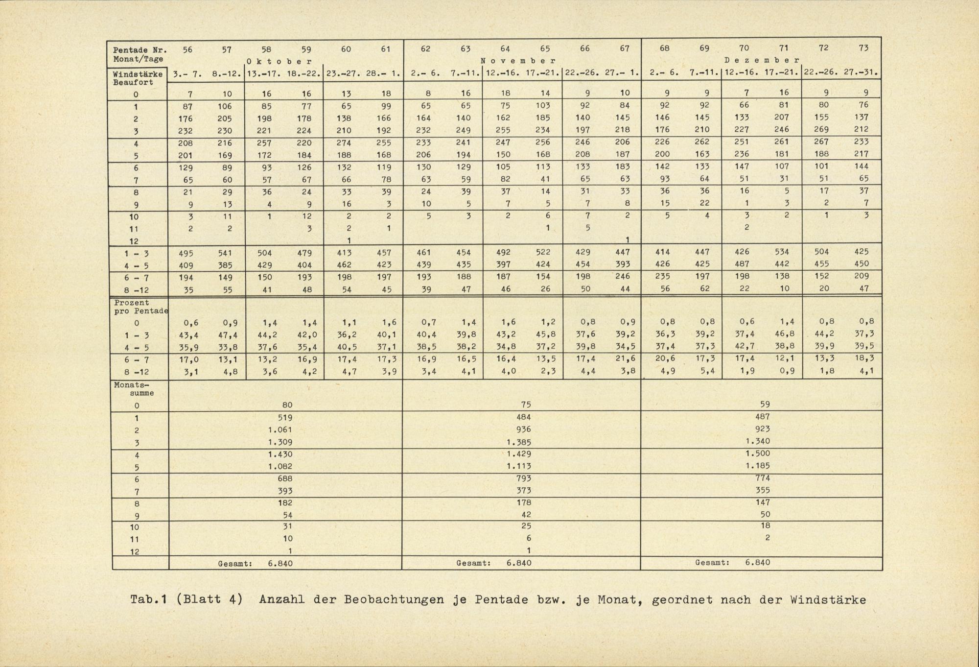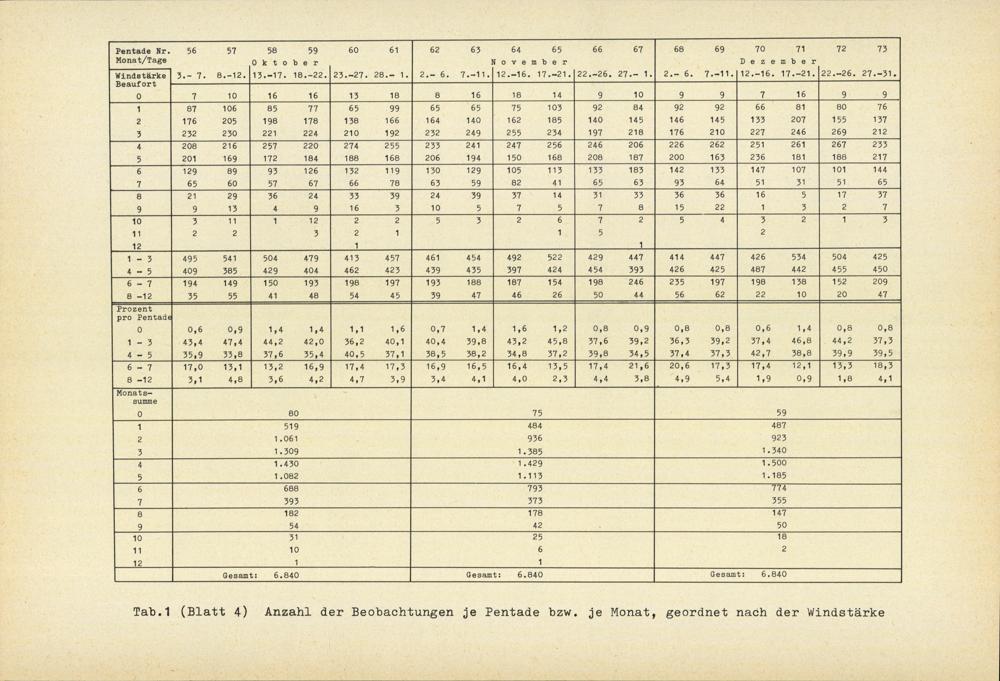 Die Windverhältnisse bei Feuerschiffs-Station Elbe 1 in den Jahren 1924 - 1961