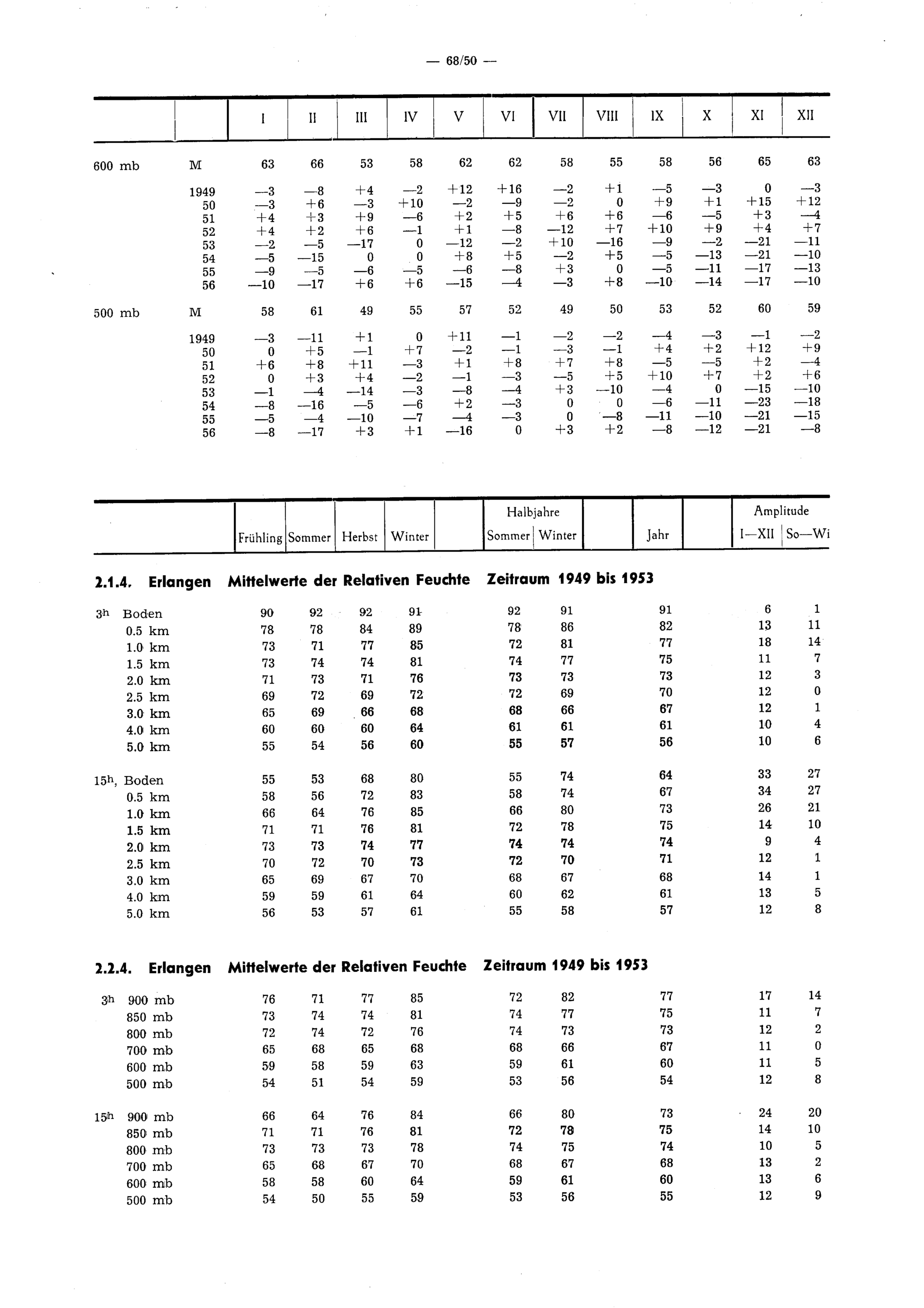 Teil VI: Mittelwerte der Relativen Feuchte über Berlin, Erlangen, München, Zeitraum 1949 bis 1953; Abweichungen in den Einzelmonaten 1949 bis 1956