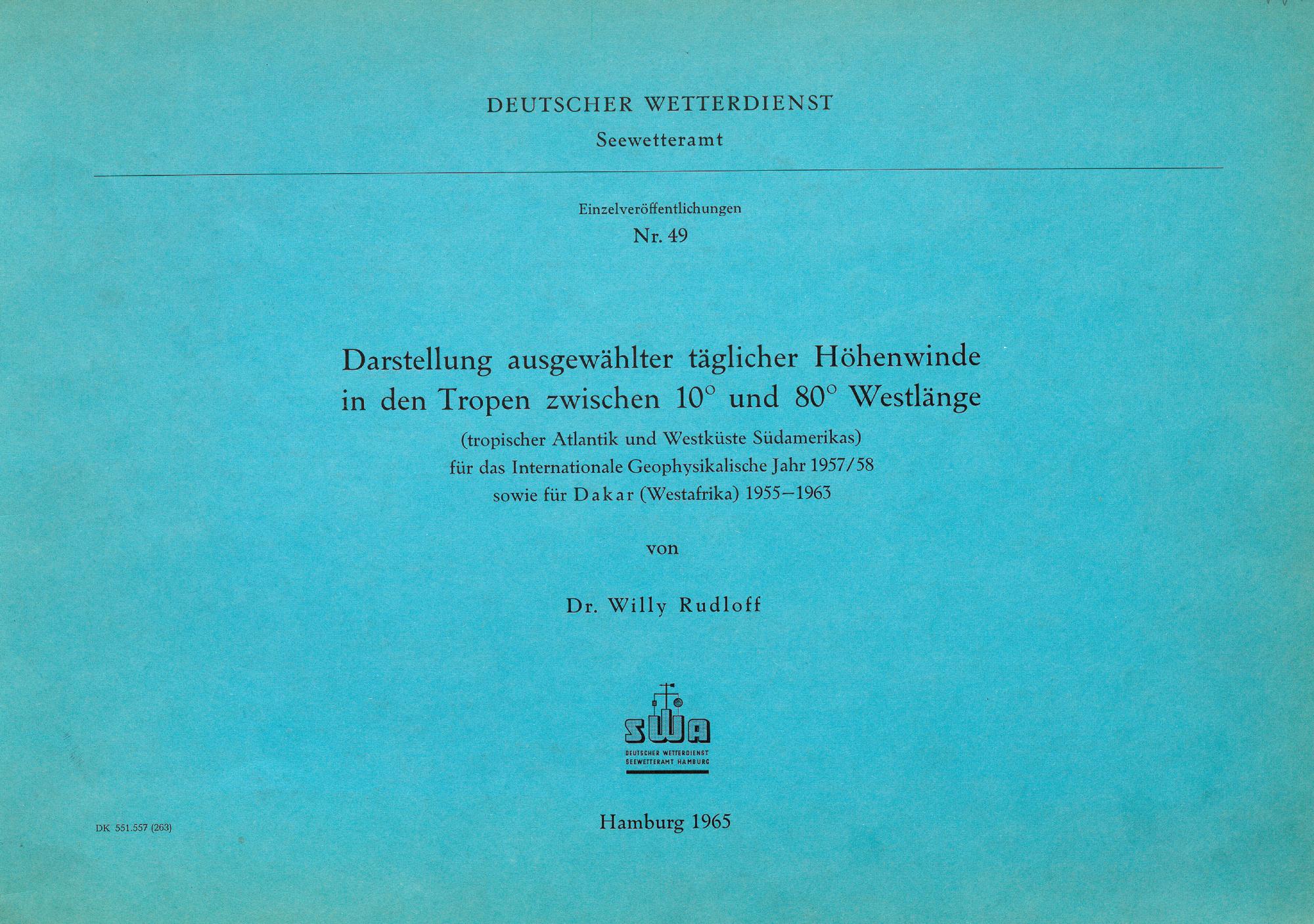 Darstellung ausgewählter täglicher Höhenwinde in den Tropen zwischen 10 und 80 Grad Westlage (Tropischer Atlantik und Westküste Südamerikas) für das Internationale Geophysikalische Jahr 1957/58 sowie für Dakar (Westafrika) 1955 - 1963 / Willy Rudloff