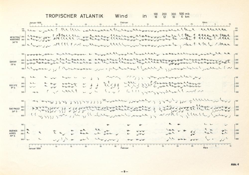 Darstellung ausgewählter täglicher Höhenwinde in den Tropen zwischen 10 und 80 Grad Westlage (Tropischer Atlantik und Westküste Südamerikas) für das Internationale Geophysikalische Jahr 1957/58 sowie für Dakar (Westafrika) 1955 - 1963 / Willy Rudloff