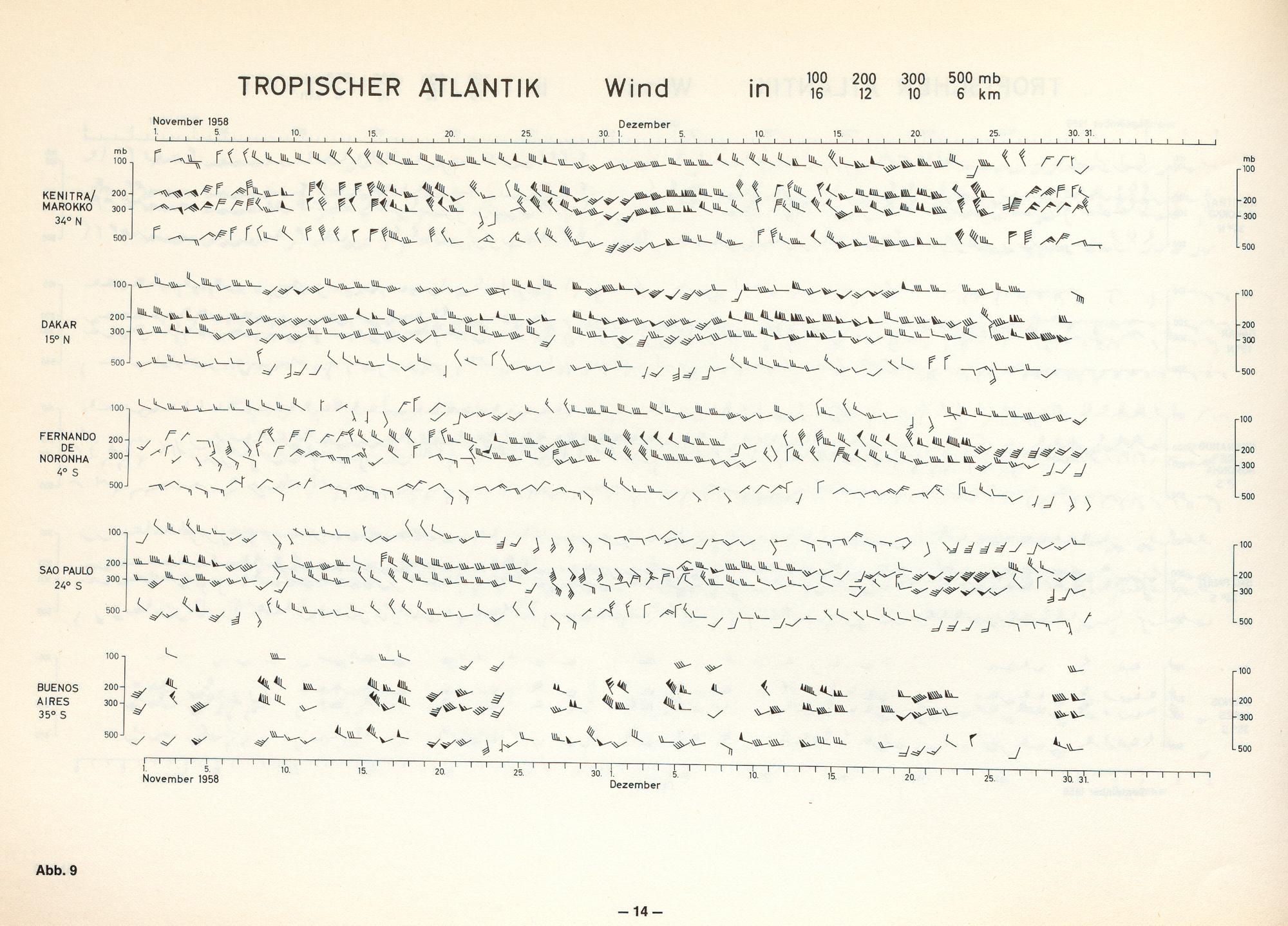 Darstellung ausgewählter täglicher Höhenwinde in den Tropen zwischen 10 und 80 Grad Westlage (Tropischer Atlantik und Westküste Südamerikas) für das Internationale Geophysikalische Jahr 1957/58 sowie für Dakar (Westafrika) 1955 - 1963 / Willy Rudloff