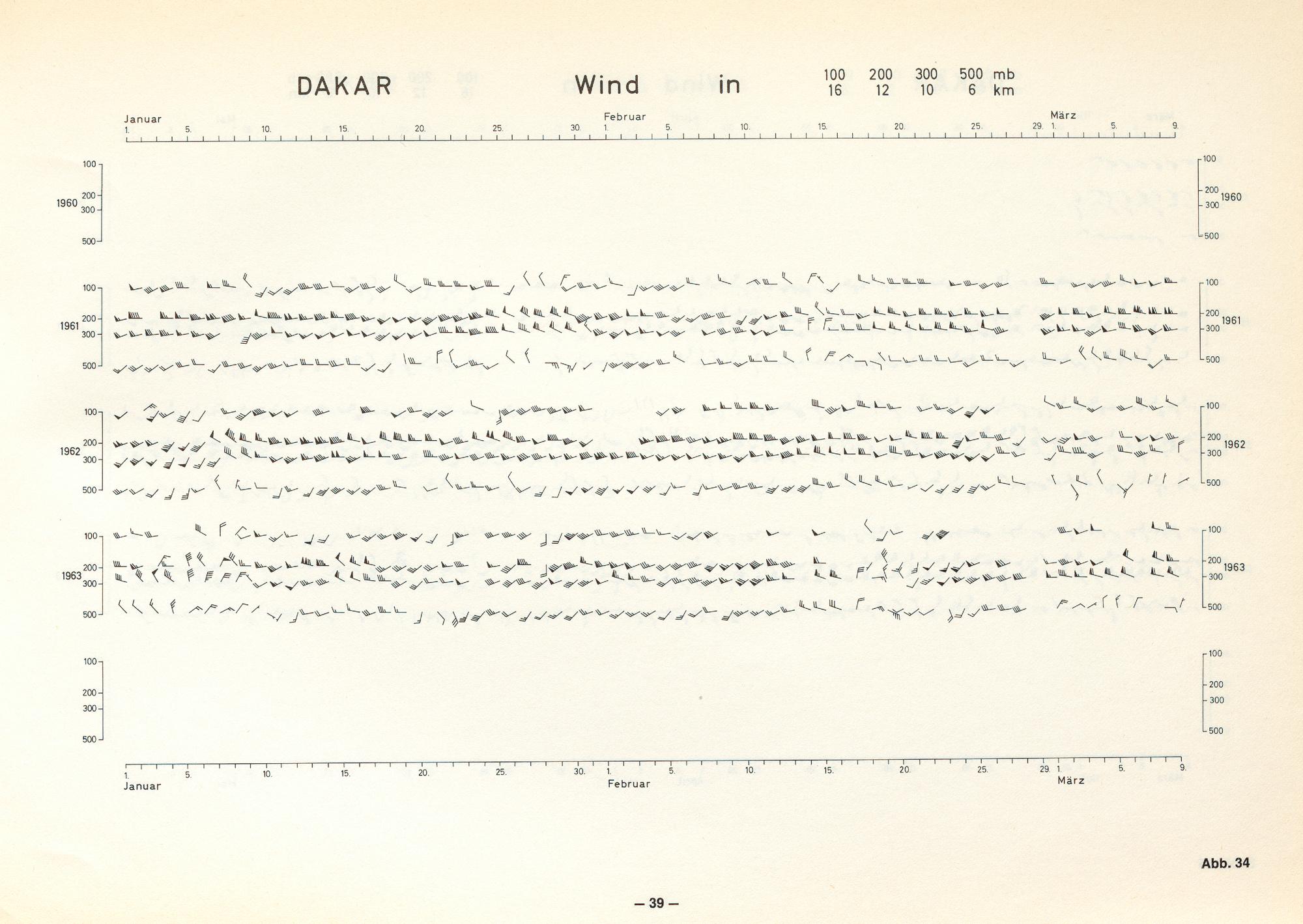Darstellung ausgewählter täglicher Höhenwinde in den Tropen zwischen 10 und 80 Grad Westlage (Tropischer Atlantik und Westküste Südamerikas) für das Internationale Geophysikalische Jahr 1957/58 sowie für Dakar (Westafrika) 1955 - 1963 / Willy Rudloff