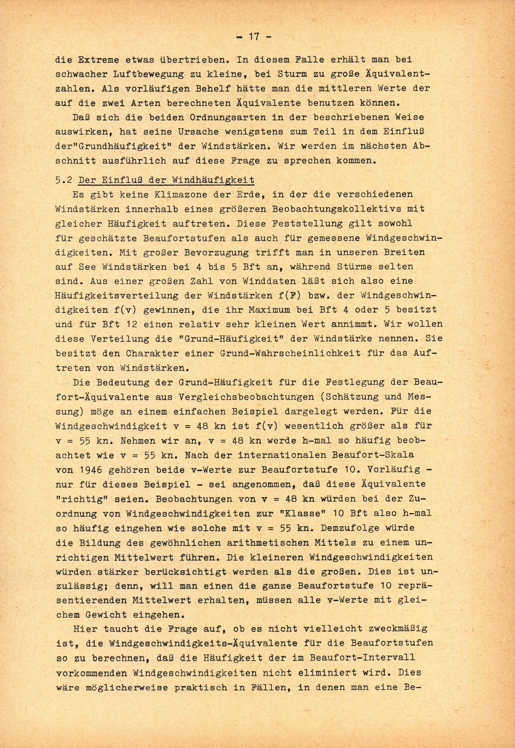 Die Windgeschwindigkeitsäquivelente der Beaufortgrade nach Beobachtungen deutscher...
