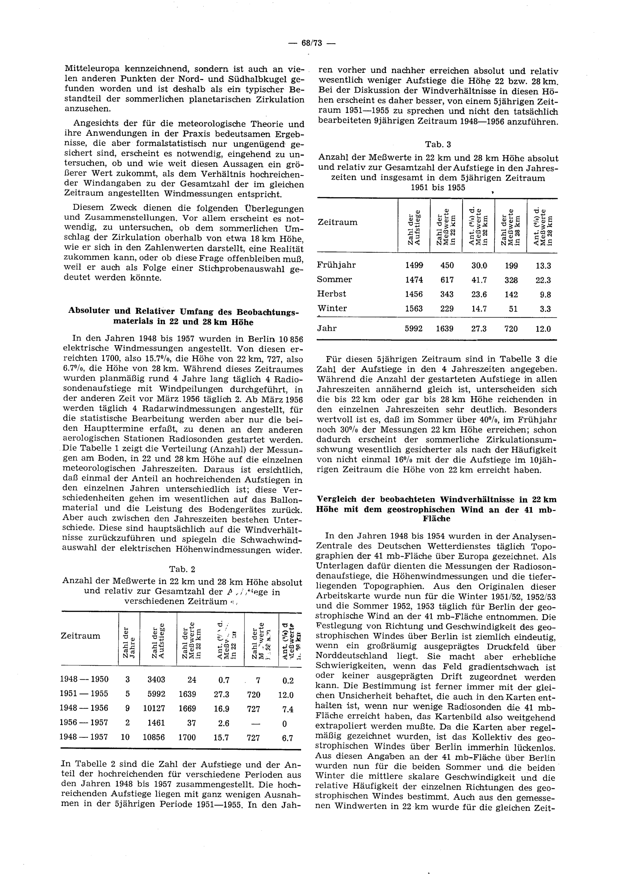 Teil VII: Mittelwerte der Tropopause über Berlin, Erlangen, München, Zeitraum 1949 bis 1953; Abweichungen und Extemwerte in den Einzelmonaten 1949 bis 1956