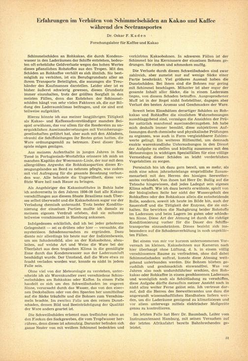 F. Kaden: Erfahrungen im Verhüten von Schimmelschäden an Kakao und Kaffee während des Seetransportes