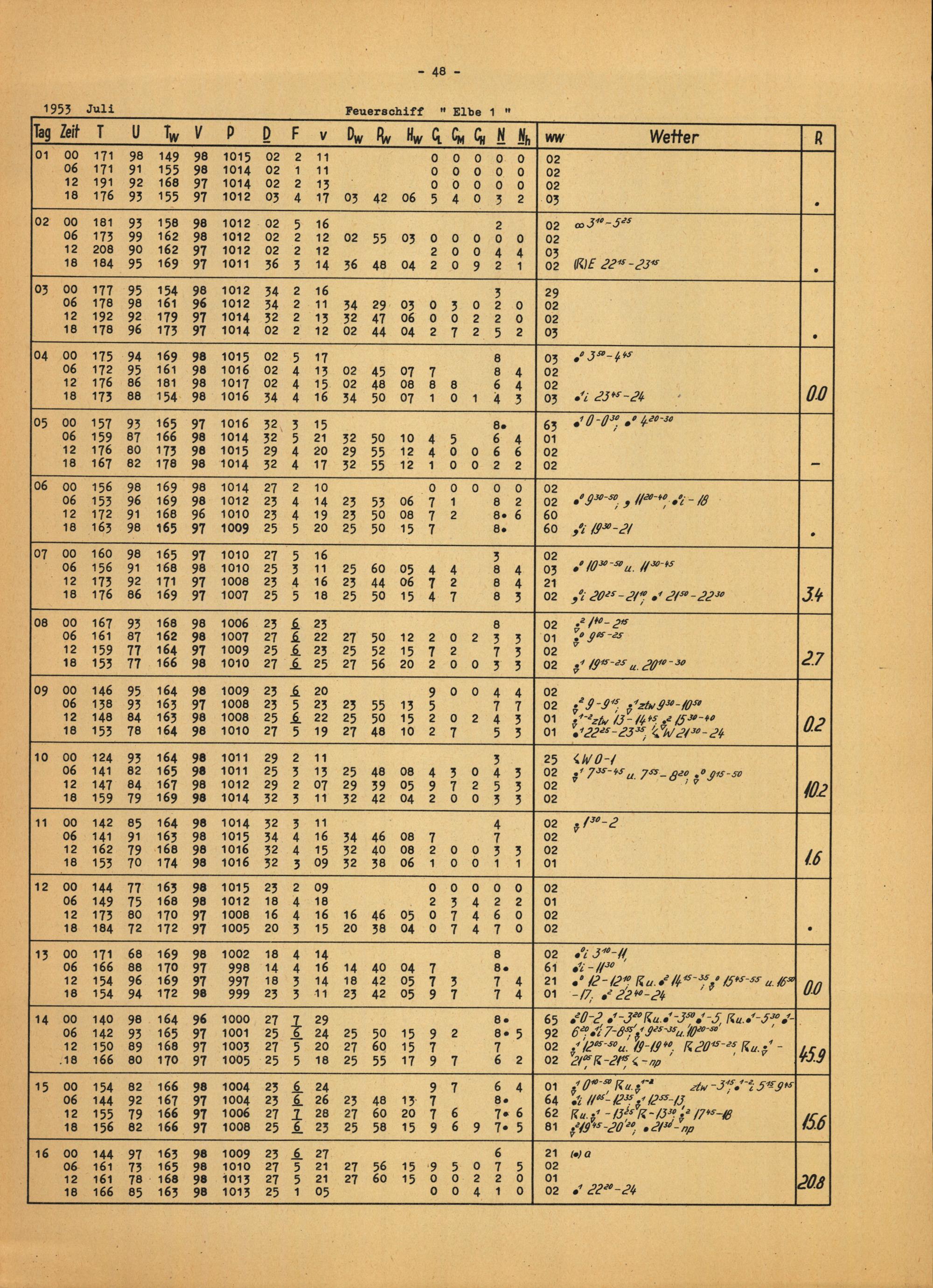 Meteorologische Beobachtungen von deutschen Feuerschiffen der Nord- und Ostsee 1953 : (Bundesrepublik) / Deutscher Wetterdienst, Seewetteramt