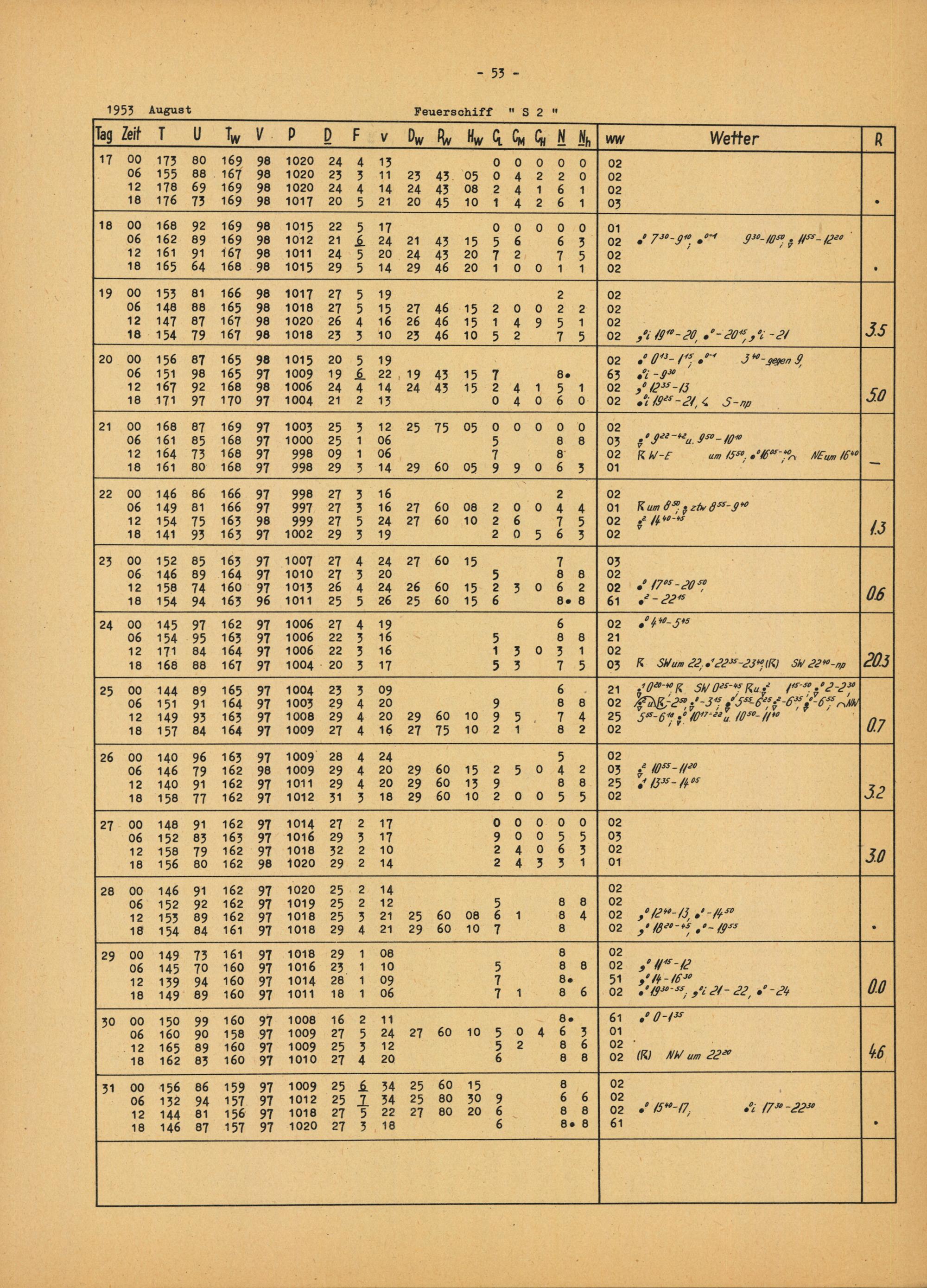 Meteorologische Beobachtungen von deutschen Feuerschiffen der Nord- und Ostsee 1953 : (Bundesrepublik) / Deutscher Wetterdienst, Seewetteramt