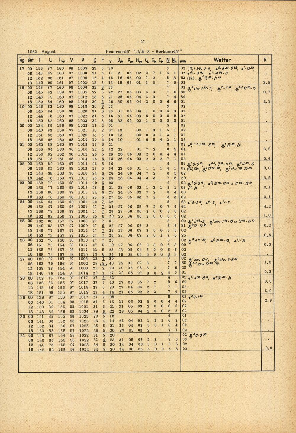 Meteorologische Beobachtungen von deutschen Feuerschiffen der Nord- und Ostsee 1962 : (Bundesrepublik) / Deutscher Wetterdienst, Seewetteramt