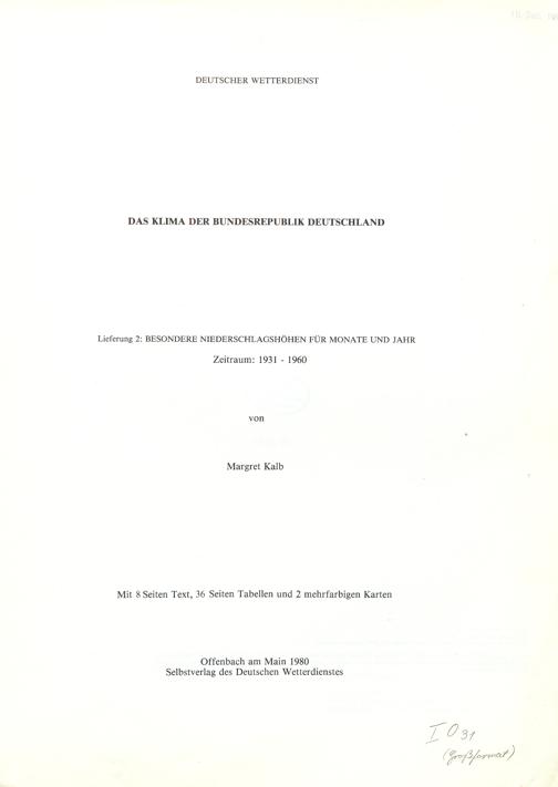 2 (1980) Besondere Niederschlagshöhen für Monate und Jahr : Zeitraum: 1931 - 1960 / von Margret Kalb / Deutscher Wetterdienst