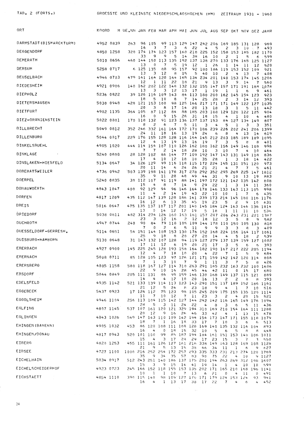 2. Besondere Niederschlagshöhen für Monate und Jahr : Zeitraum: 1931 - 1960 / von...