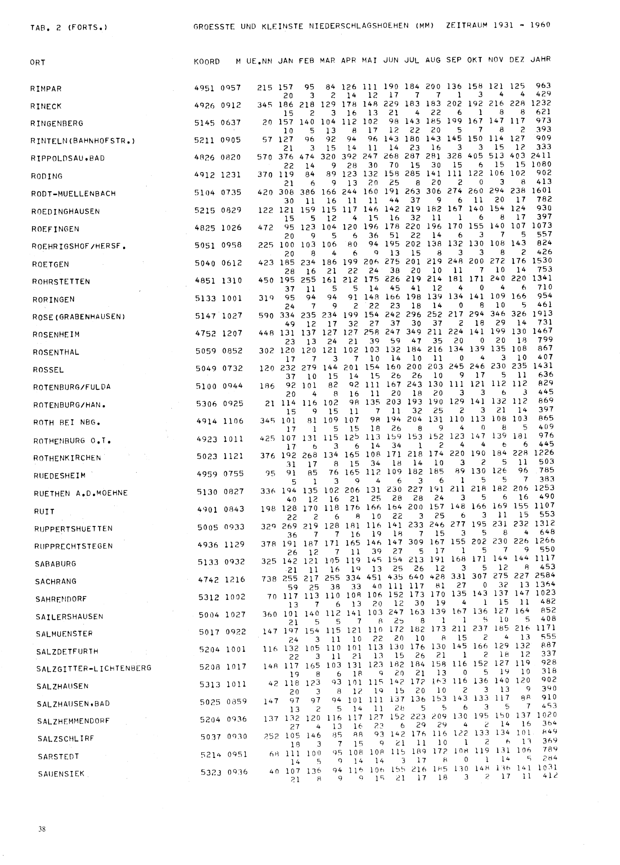 2. Besondere Niederschlagshöhen für Monate und Jahr : Zeitraum: 1931 - 1960 / von...