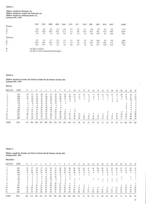 4 (1992) Mittlere Nebelhäufigkeit und Nebelstruktur : Zeitraum 1951 - 1980 und 1951 - 1960 / von Margret Kalb und Hans Schirmer / Deutscher Wetterdienst