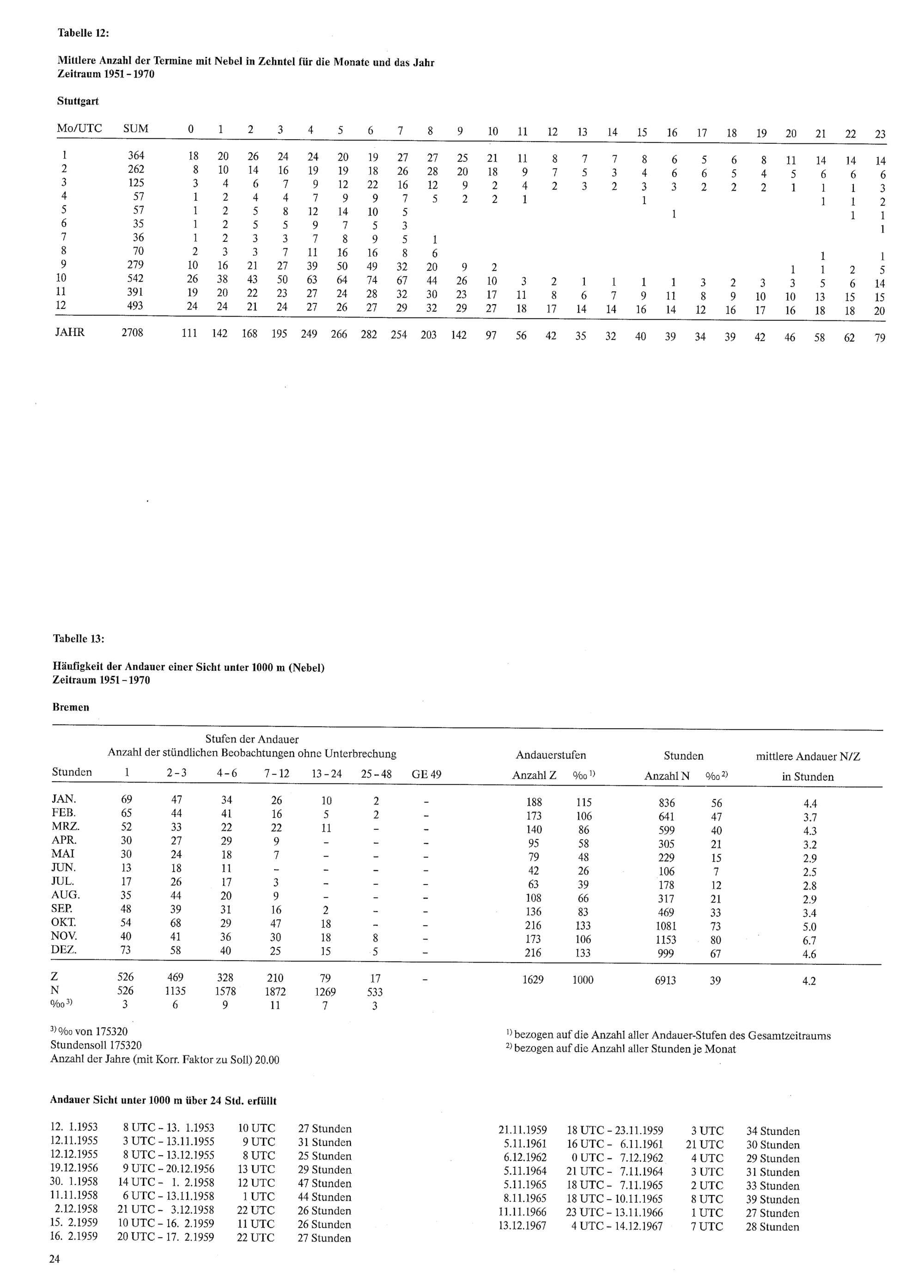 4 (1992) Mittlere Nebelhäufigkeit und Nebelstruktur : Zeitraum 1951 - 1980 und 1951 - 1960 / von Margret Kalb und Hans Schirmer / Deutscher Wetterdienst