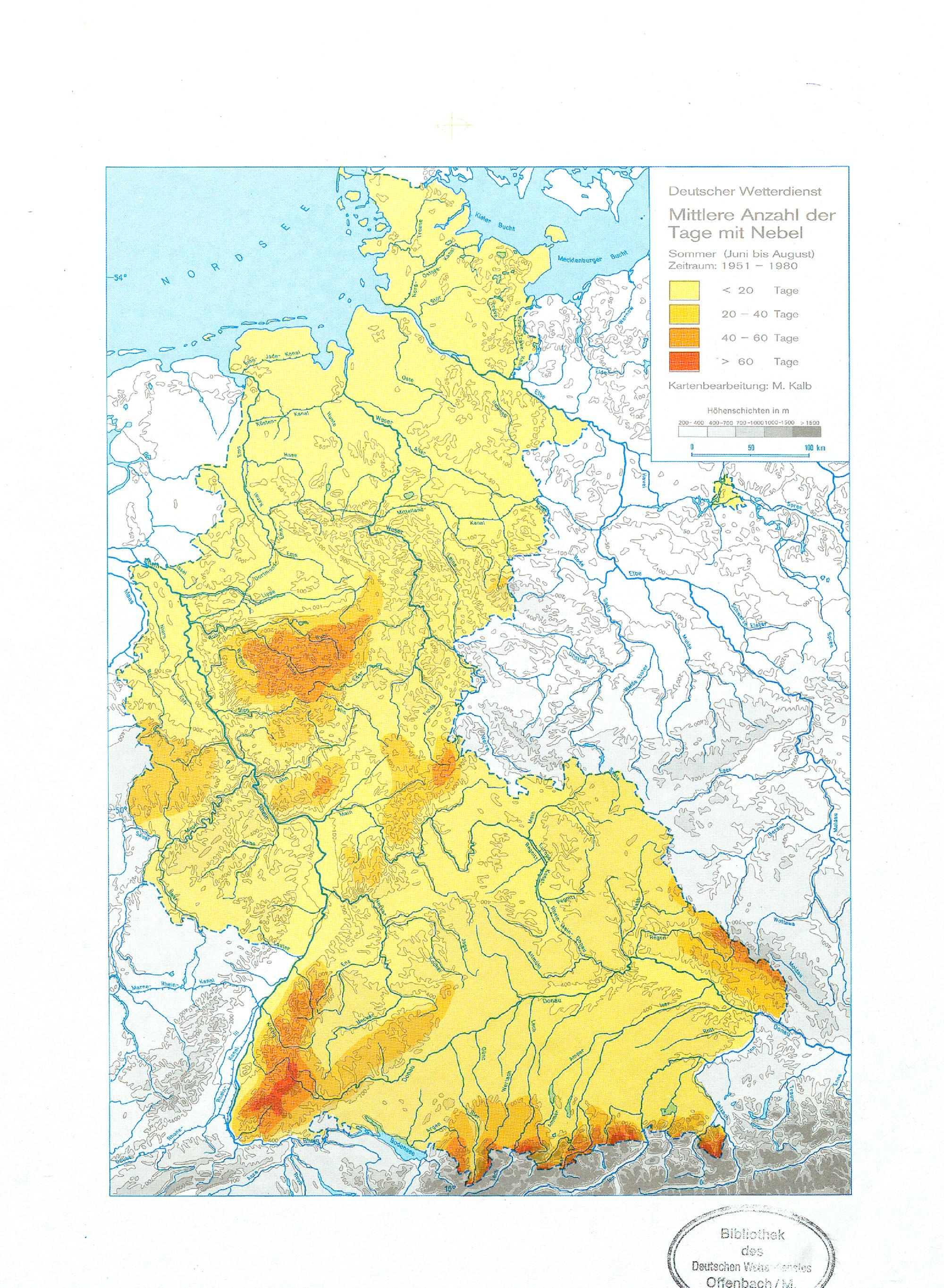 4 (1992) Mittlere Nebelhäufigkeit und Nebelstruktur : Zeitraum 1951 - 1980 und 1951 - 1960 / von Margret Kalb und Hans Schirmer / Deutscher Wetterdienst