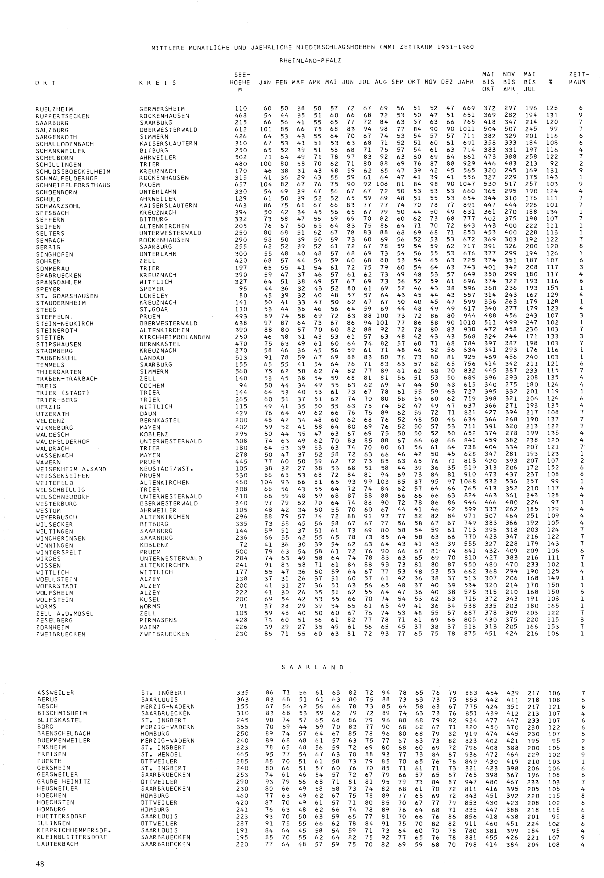 1 (1979) Mittlere Niederschlagshöhen für Monate und Jahr : Zeitraum 1931 - 1960 / von Hans Schirmer und Volker Vent-Schmidt / Deutscher Wetterdienst