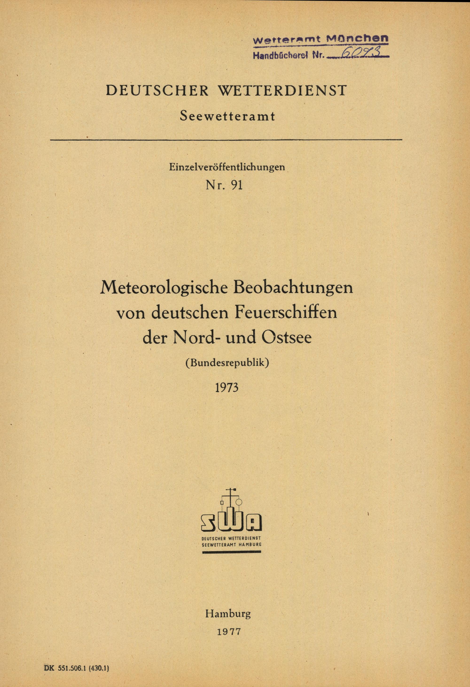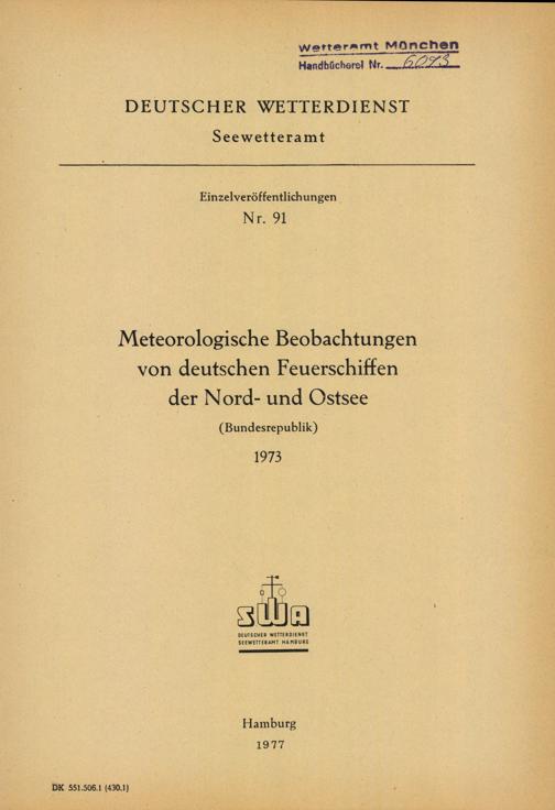 Meteorologische Beobachtungen von deutschen Feuerschiffen der Nord- und Ostsee 1973 : (Bundesrepublik) / Deutscher Wetterdienst, Seewetteramt