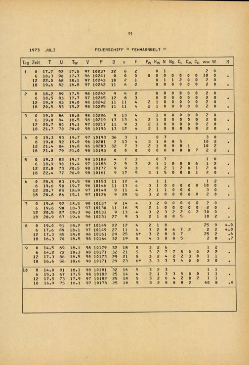 Meteorologische Beobachtungen von deutschen Feuerschiffen der Nord- und Ostsee 1973 : (Bundesrepublik) / Deutscher Wetterdienst, Seewetteramt