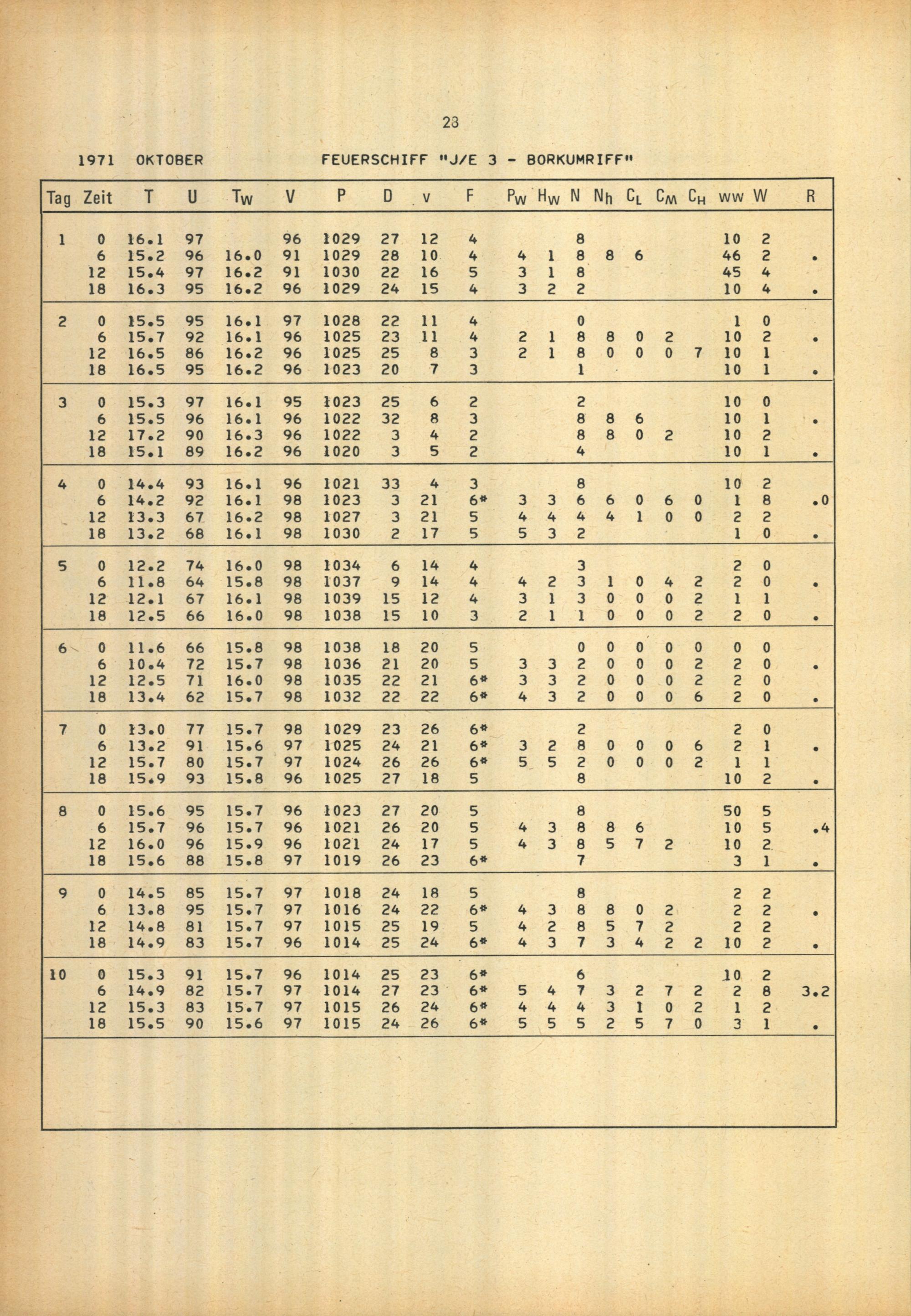 Meteorologische Beobachtungen von deutschen Feuerschiffen der Nord- und Ostsee 1971 : (Bundesrepublik) / Deutscher Wetterdienst, Seewetteramt