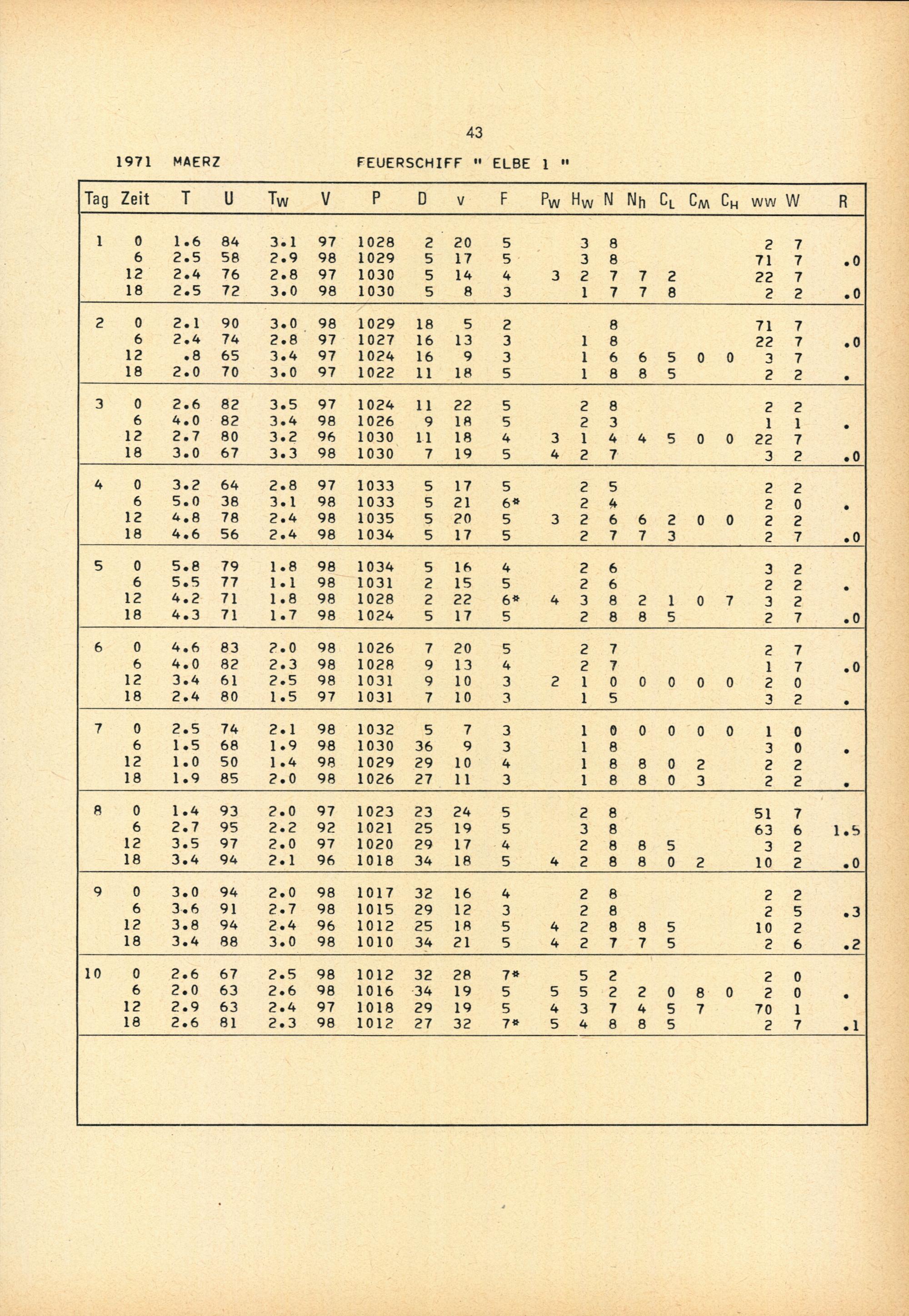 Meteorologische Beobachtungen von deutschen Feuerschiffen der Nord- und Ostsee 1971 : (Bundesrepublik) / Deutscher Wetterdienst, Seewetteramt