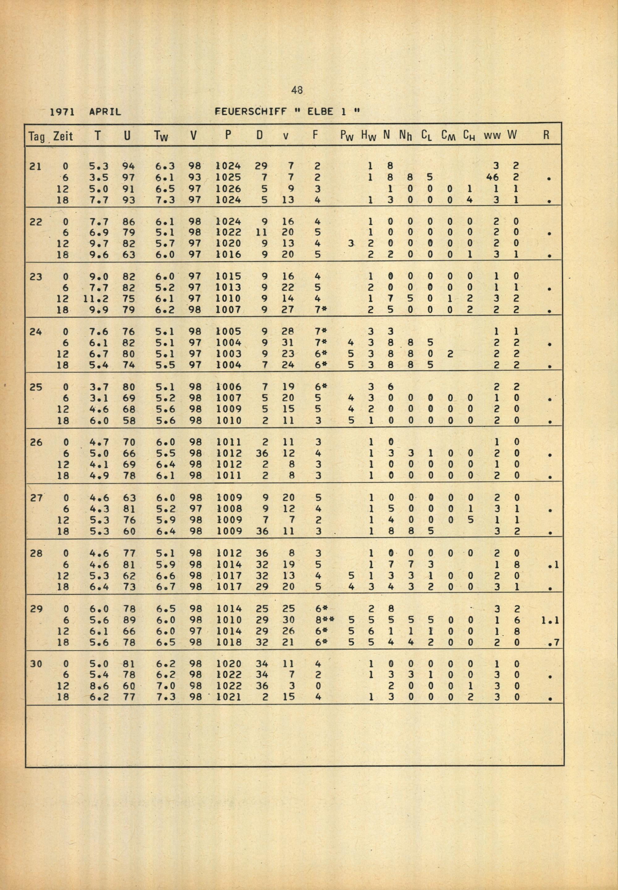 Meteorologische Beobachtungen von deutschen Feuerschiffen der Nord- und Ostsee 1971 : (Bundesrepublik) / Deutscher Wetterdienst, Seewetteramt