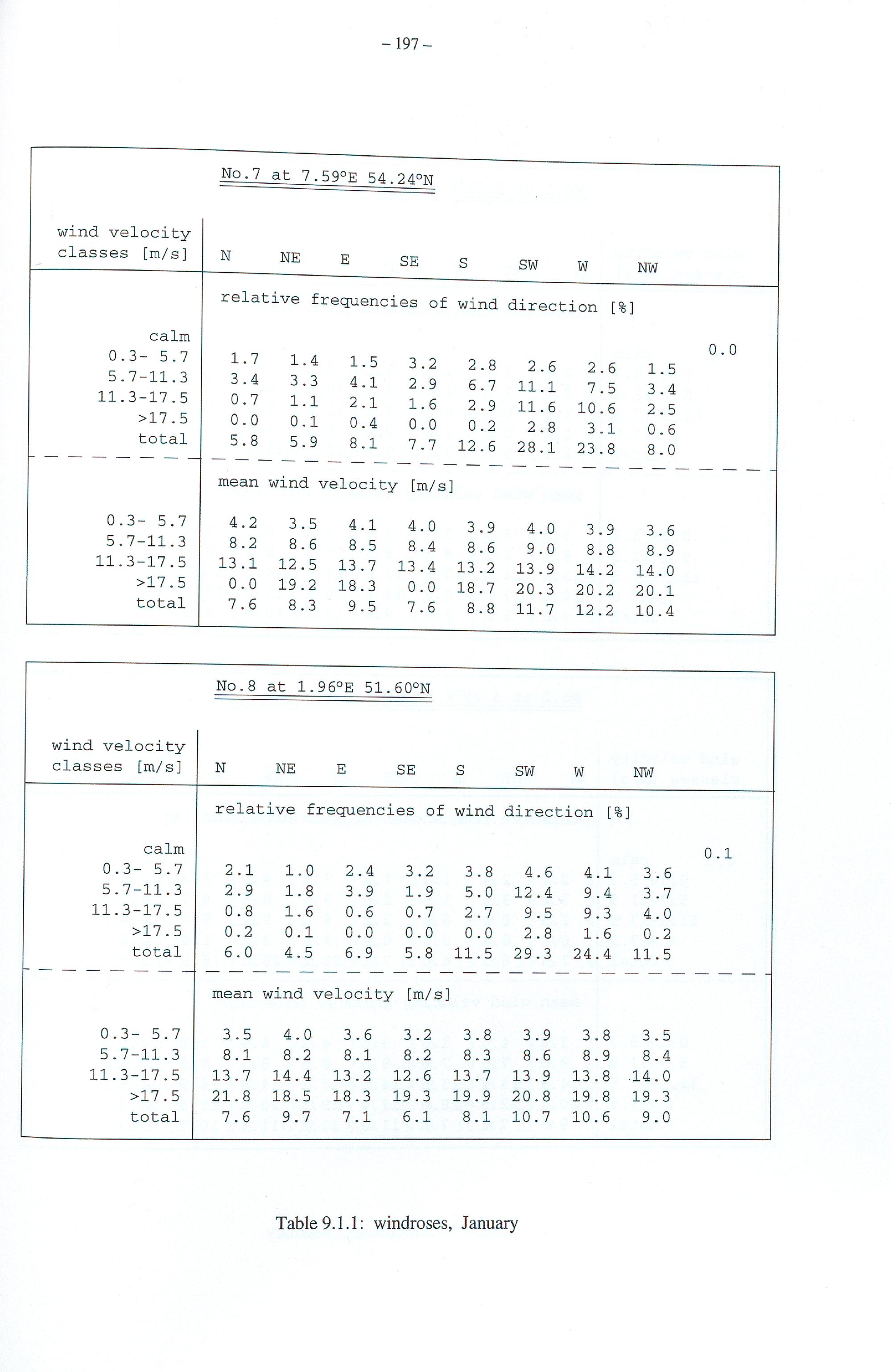 9.1. Tables of windroses